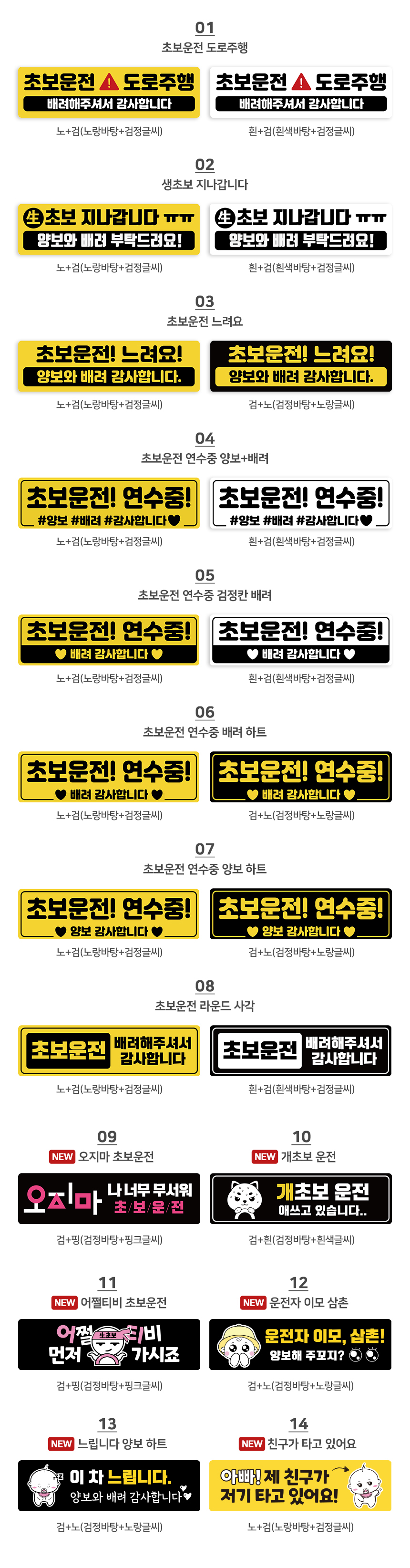 자석형으로 쉽게 탈부착 할 수 있는 다양한 초보운전스티커 자석