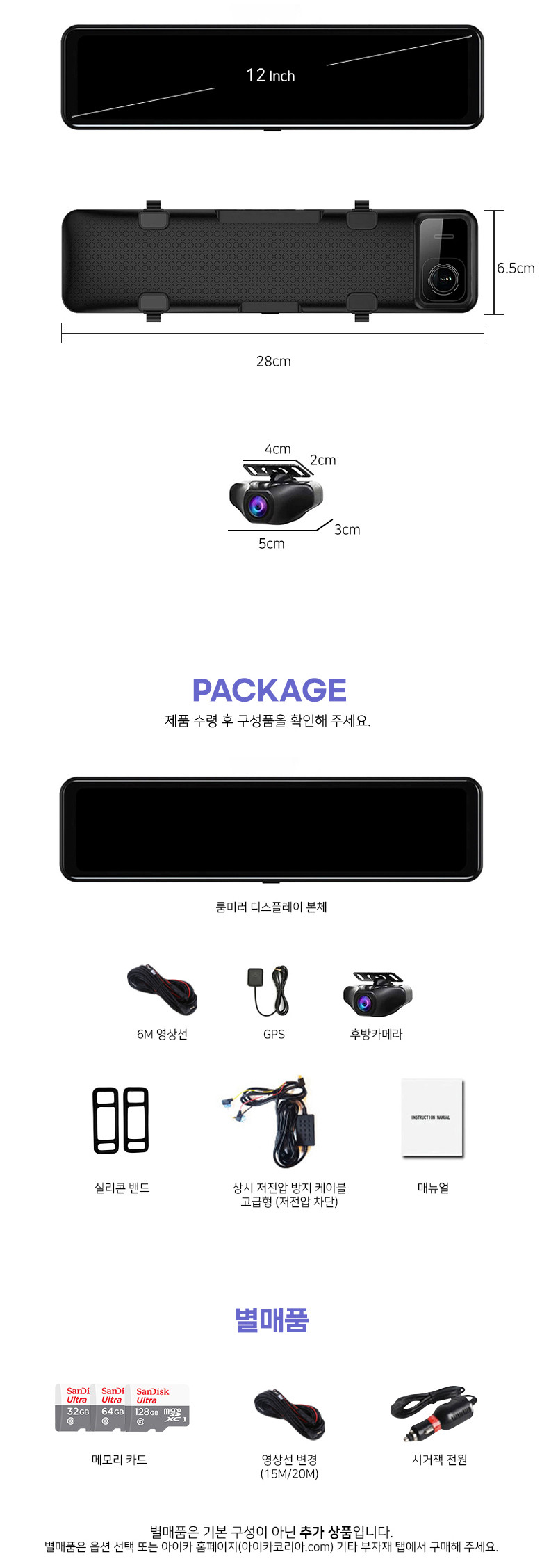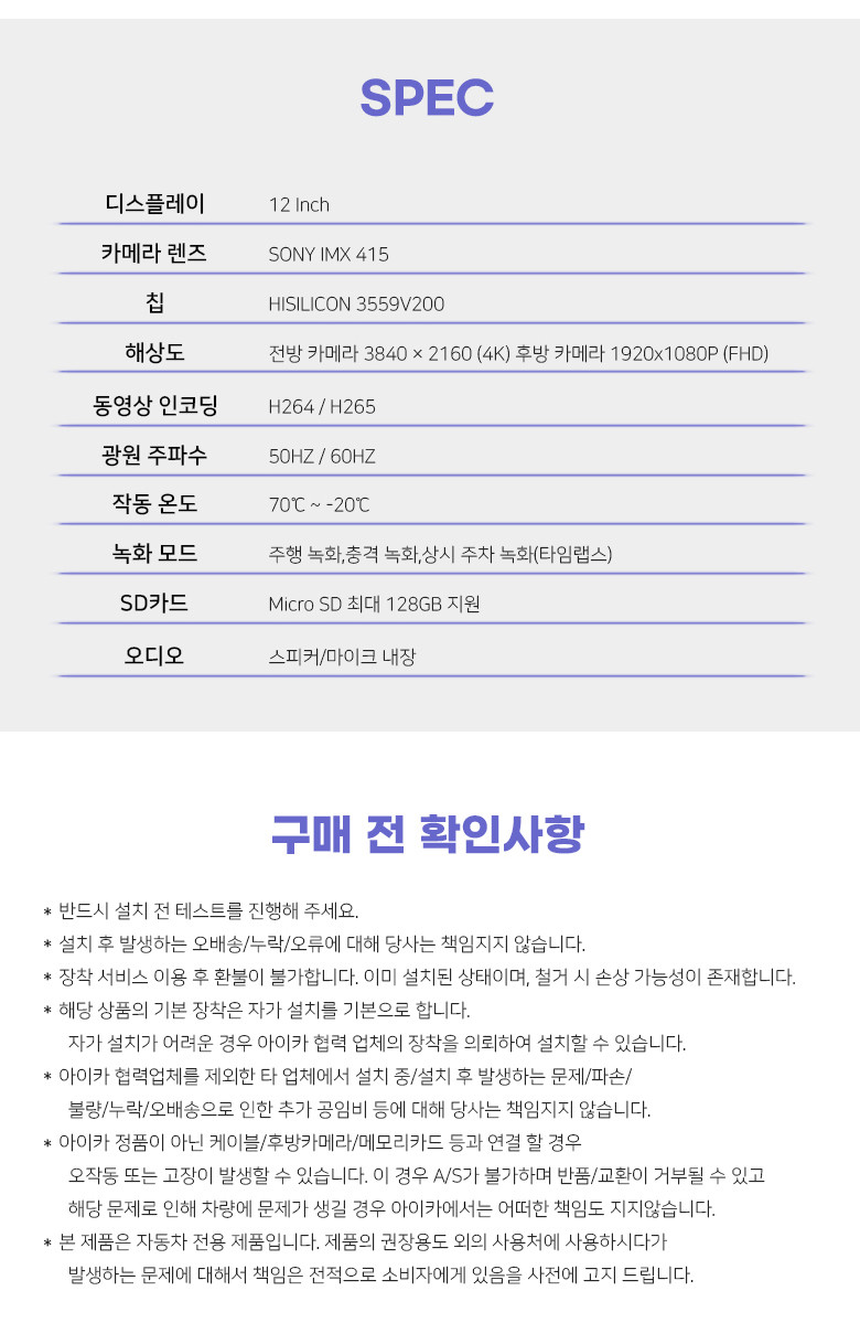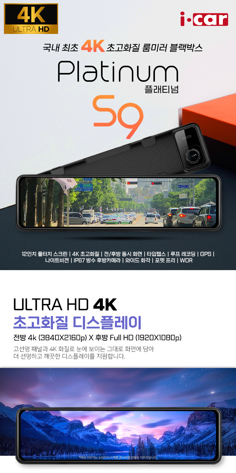 자동차 룸미러 블랙박스 아이카 4K UHD 12인치 플래티넘 S9 카메라 백미러