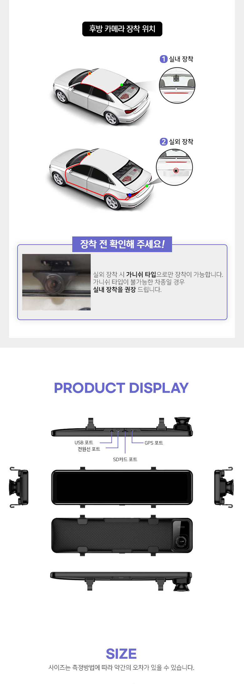 12인치 초대형 화면에 4K UHD 화질! 룸미러 블랙박스로 전·후방 사각지대까지 완벽 커버. 왜곡 없는 와이드 뷰로 더욱 안전한 주행을 경험하세요.