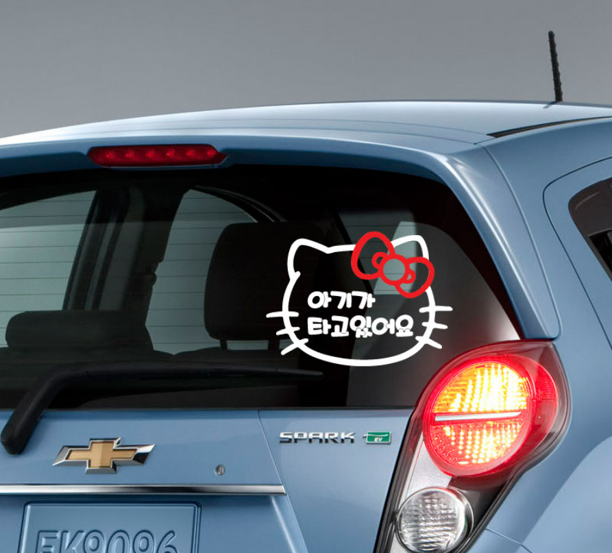 차량용 아기 탑승 스티커 헬로키티 안전 경고 데칼스티커