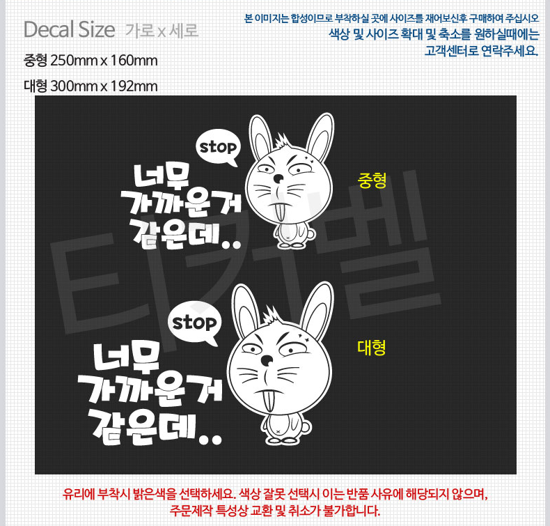 차량용 초보운전 스티커 안전운전 표시 토빗 토끼 데칼스티커
