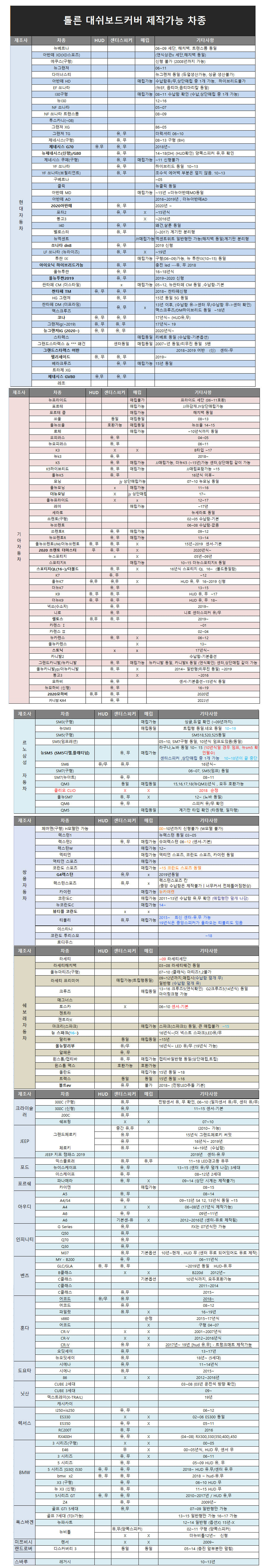 차량용 전차종 맞춤형 사피아노 가죽 논슬립 방수 대쉬보드커버