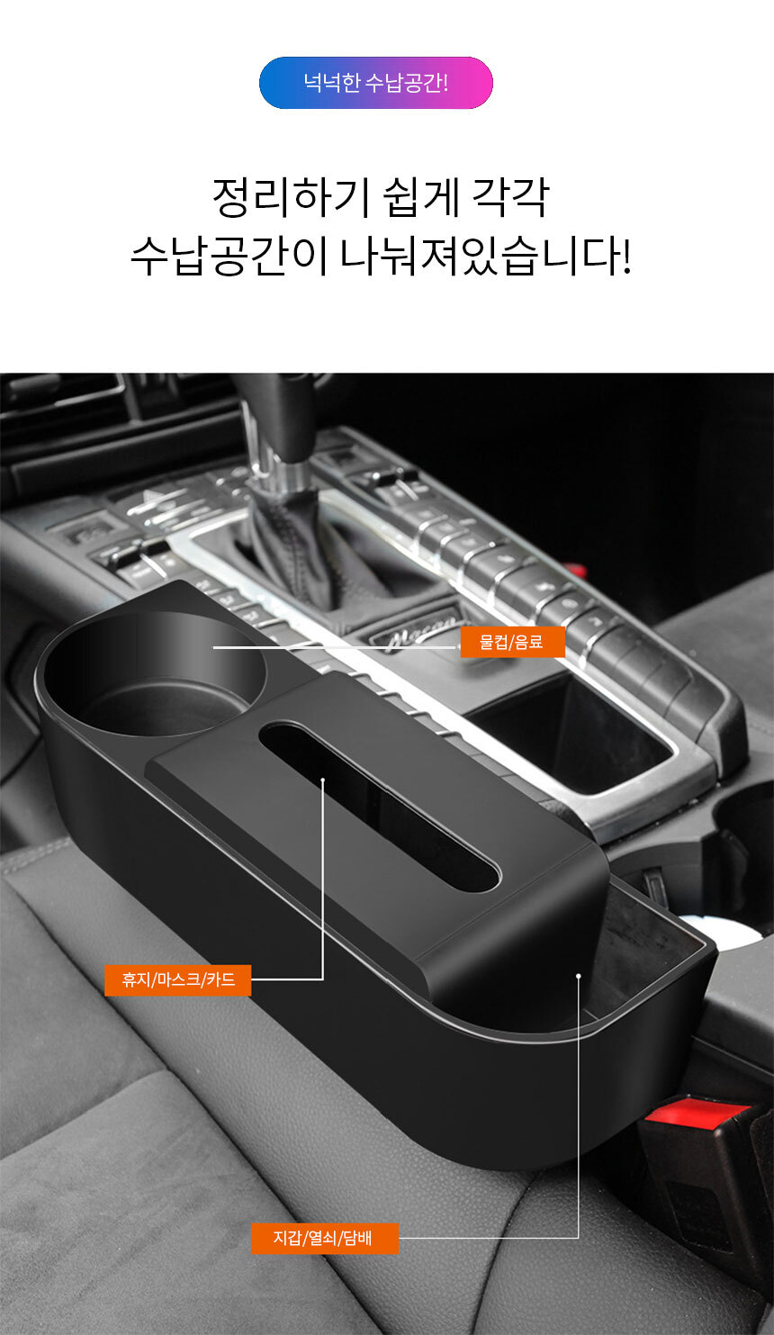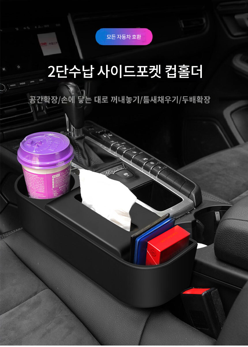 차량용 사이드포켓 컵홀더 TKB 틈새 2단 수납함