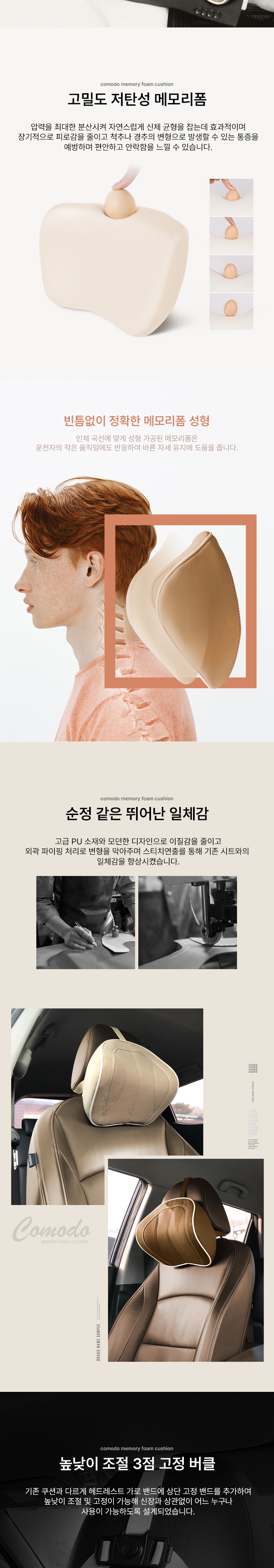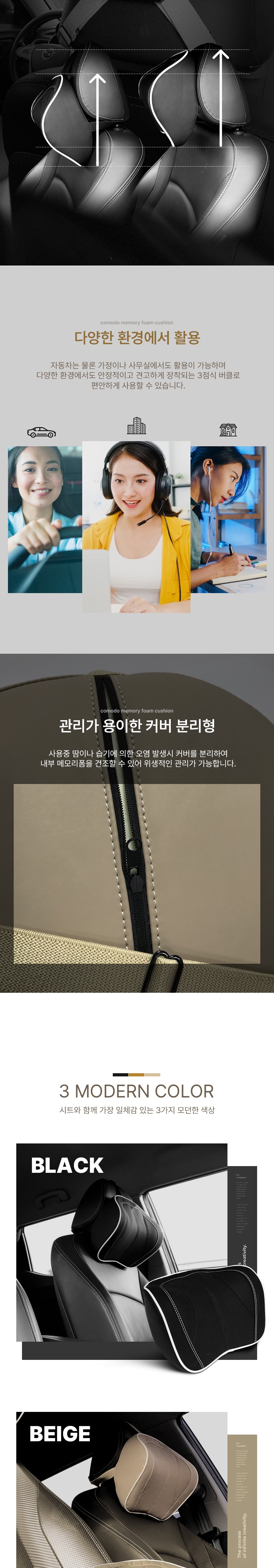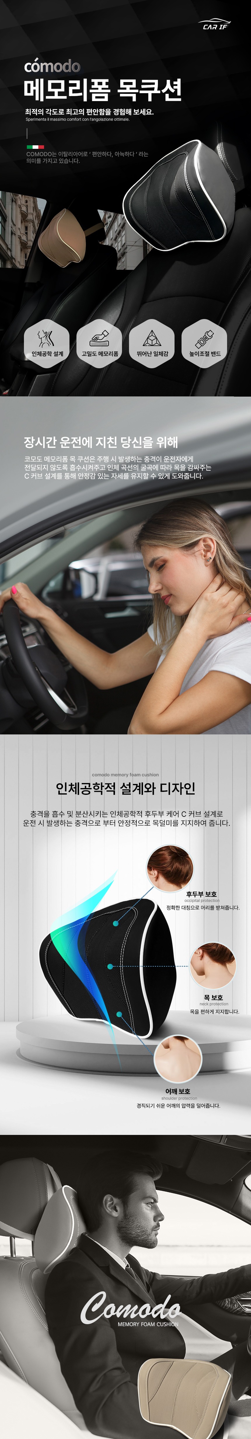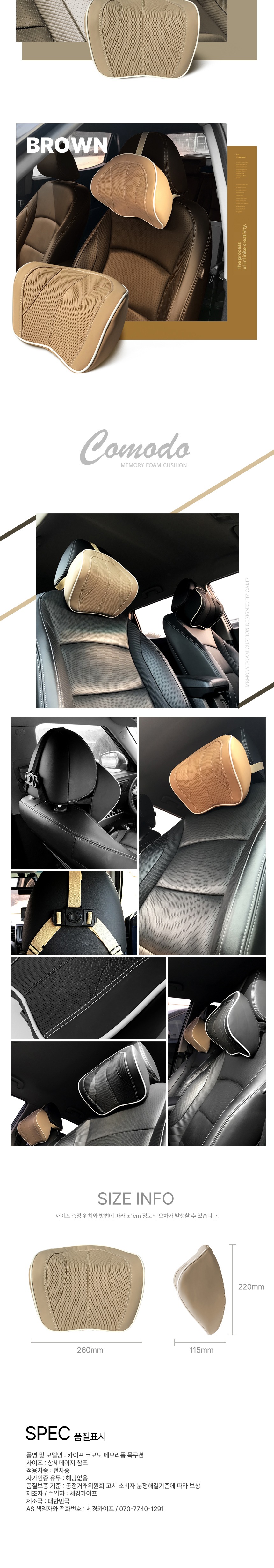 인체공학적 설계로 장시간 운전이나 여행 중에도 편안함을 느낄 수 있는 카이프 코모도 목쿠션