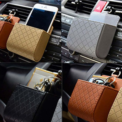자동차 수납함 차량용 송풍구 가죽포켓 다용도 핸드폰걸이