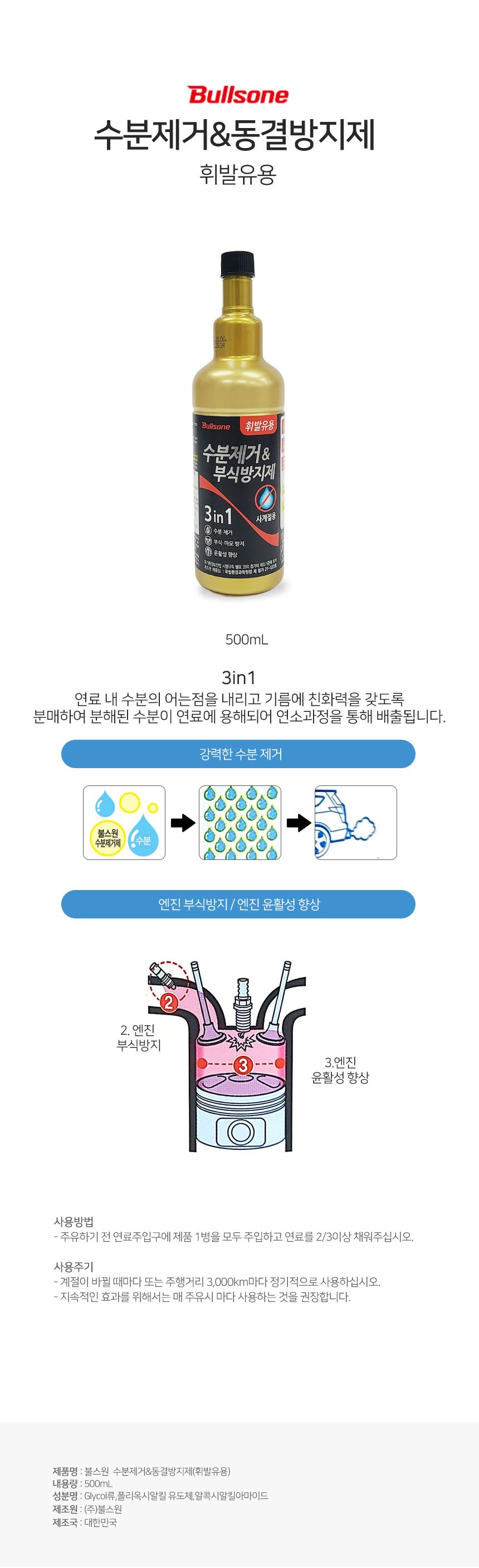 차량용 불스원 3in1 휘발유 사계절용 수분제거제 동결방지제 부식방지제