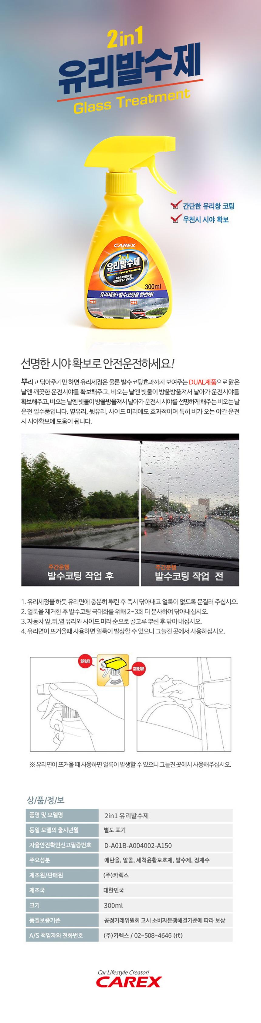 2in1 유리발수제 300ml로 장마철에도 선명한 시야확보로 운전을 더 안전하게