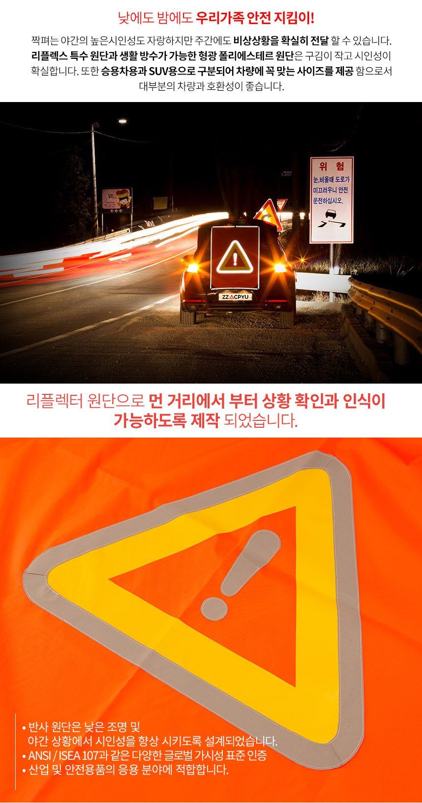2차사고방지/차량용삼각대/차량용안전표시판/안전표시판/자동차사고방지/구난용품/비상용품 2차사고 안전 안전불감증 비상 삼각대 경고판 교통 안전표시 비상용