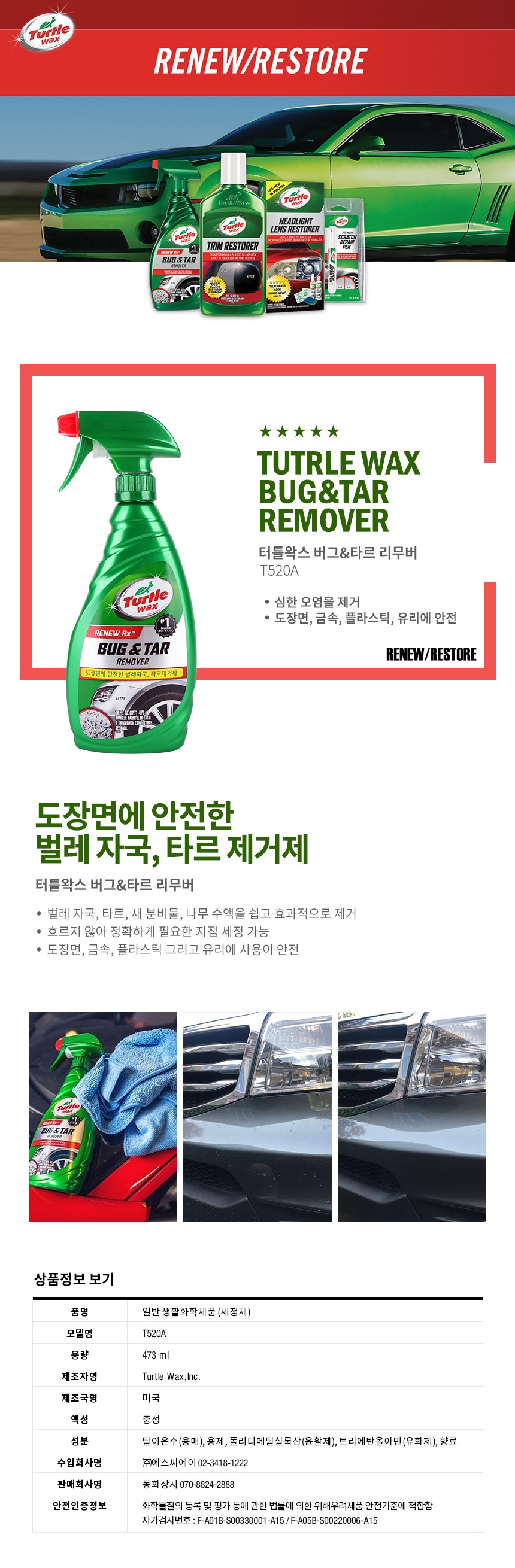 자동차세차/자동차벌레자국/자동차타르/새똥세차/벌레세차/외부세차/타르제거제/자동차타르제거제/도장면에 안전한 리무버/[터틀왁스] 14 버그 타르 리무버 473ml T520 /터틀왁스/카담매거진