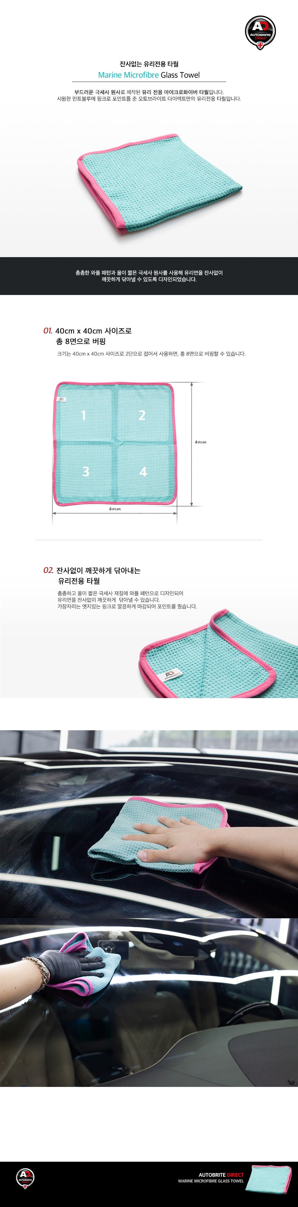 자동차 유리전용 타올타월/오토브라이트 마린 글래스 타월/ 양면 버핑 세차용 자동차 타올 수건 걸레/ 마이크로 화이버 타올