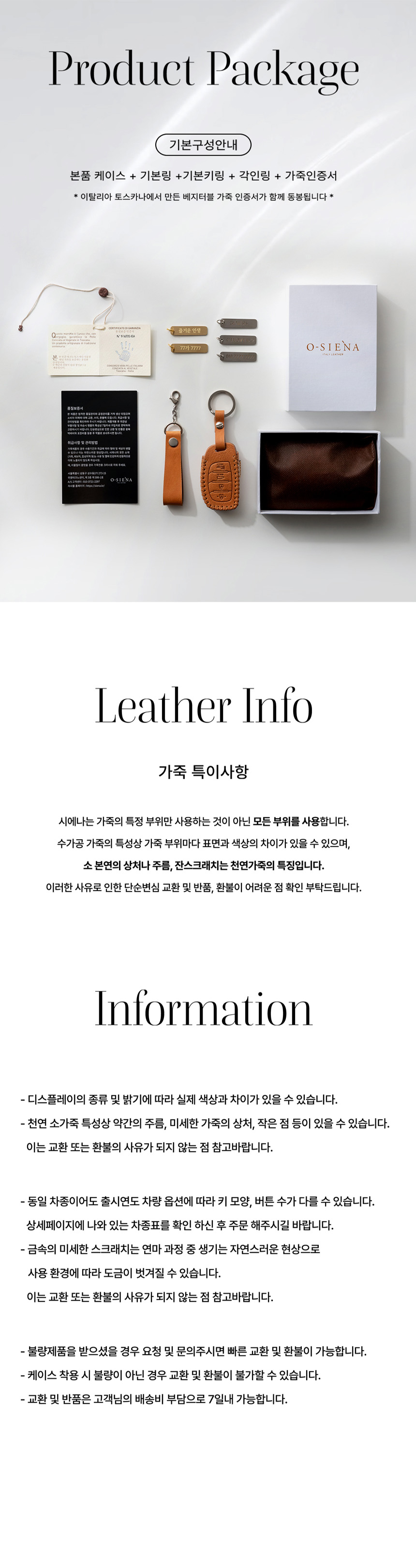 전차종 럭셔리 자동차 가죽 스마트 차키케이스 오시에나 키커버 무료 각인 서비스