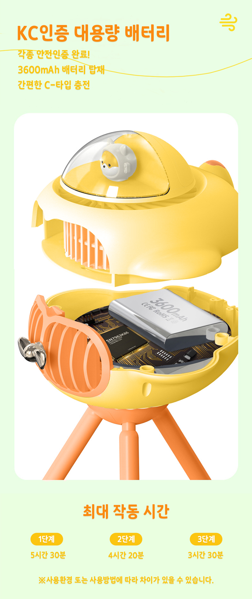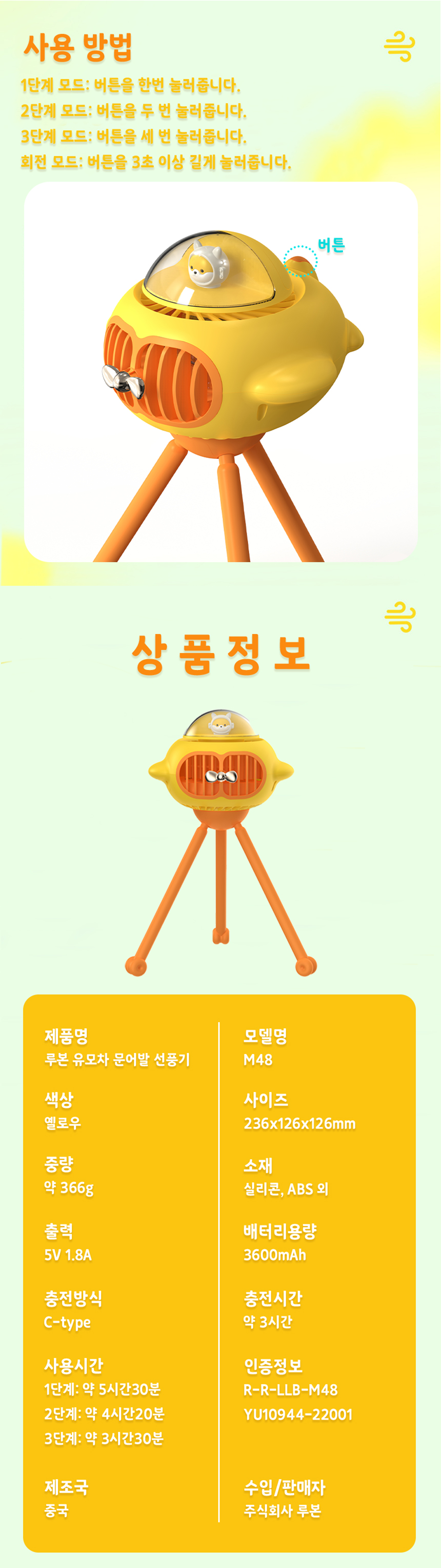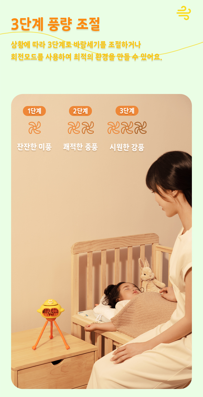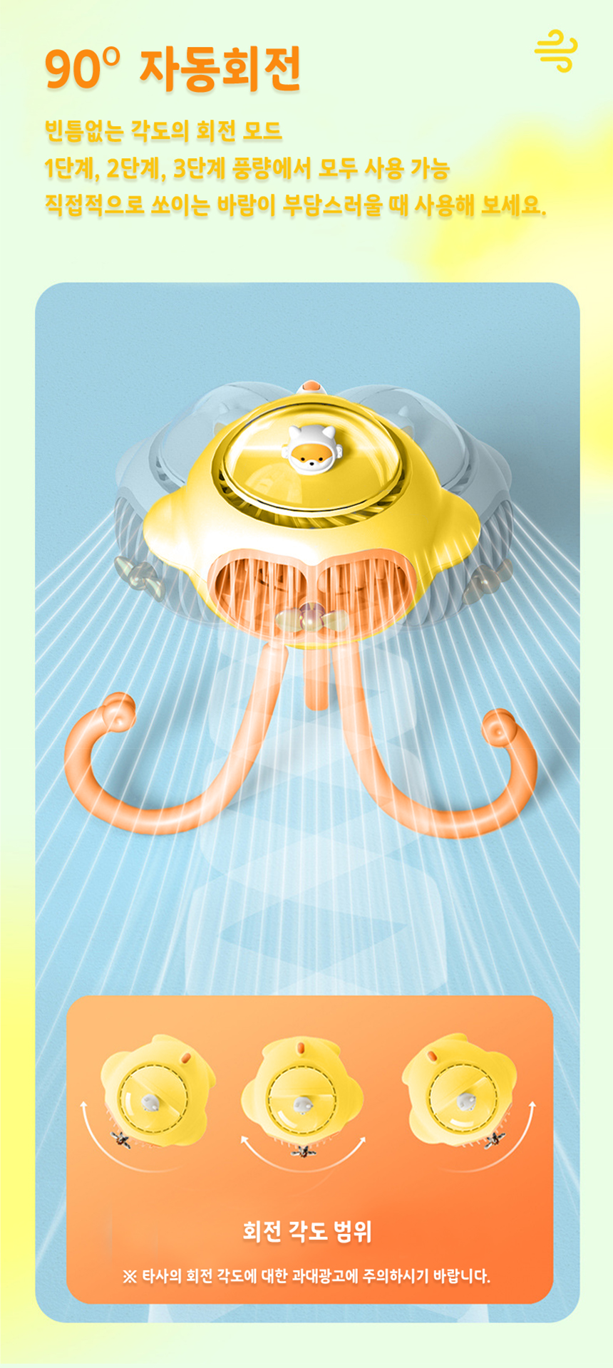 3단계 풍량 조절과 90도 자동 회전이 가능한 귀여운 캐릭터모양의 선풍기