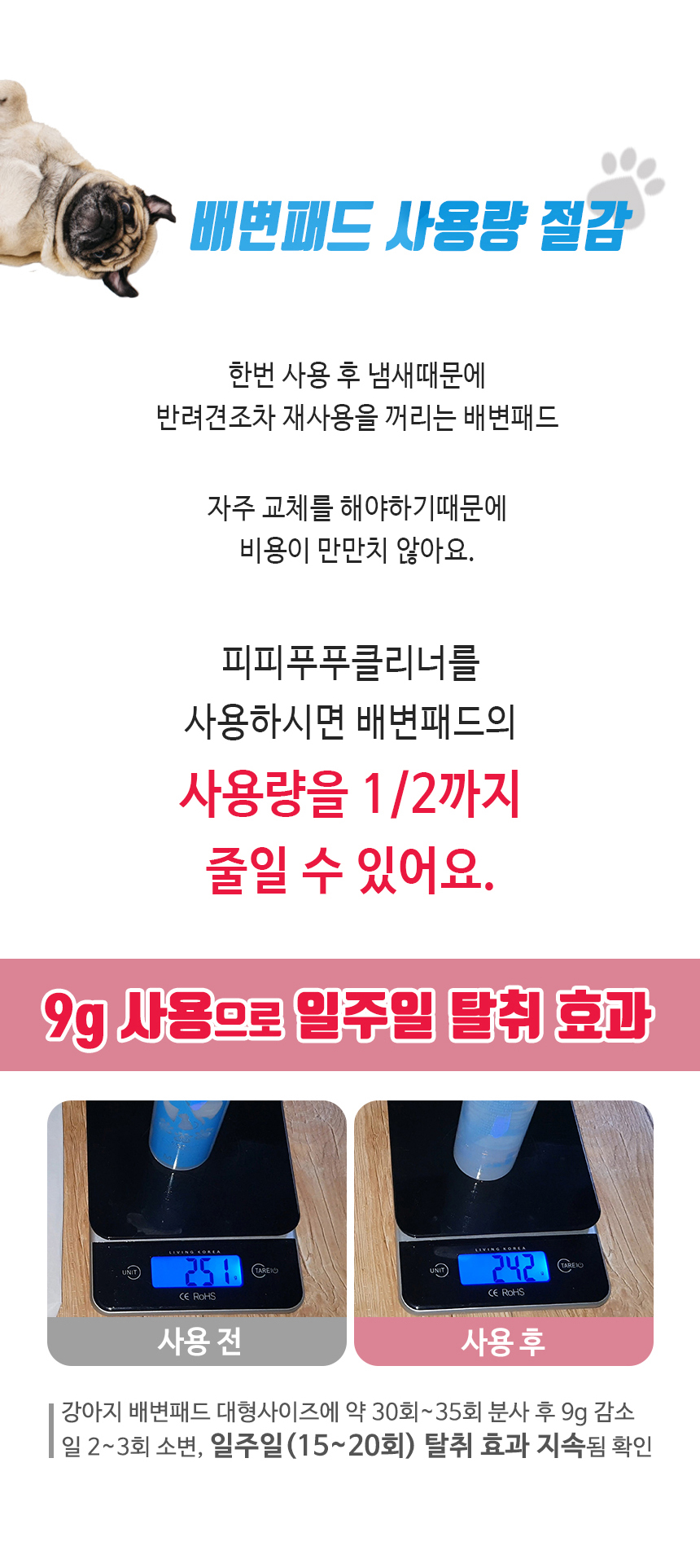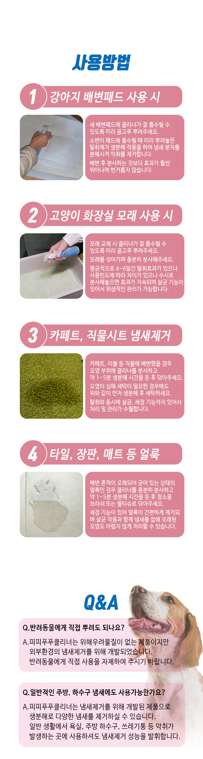 반려동물 배변 전용 탈취제로써 세정 기능까지 한번에 가능한 피피푸푸클리너 탈취제