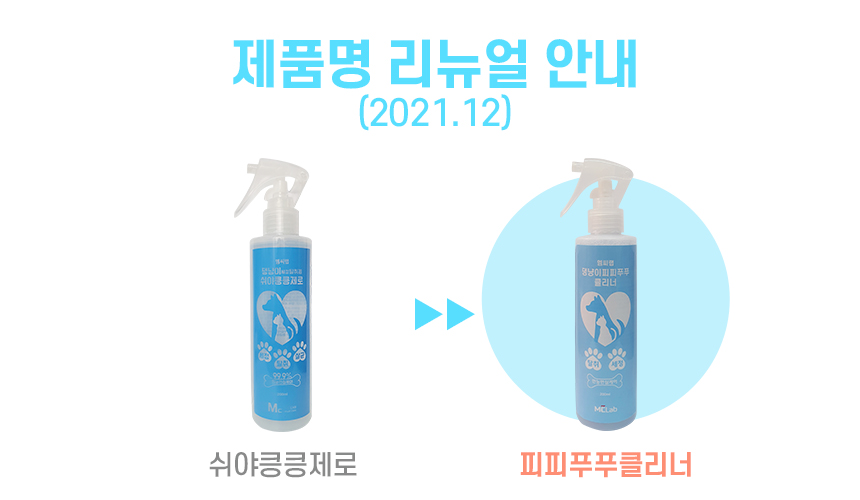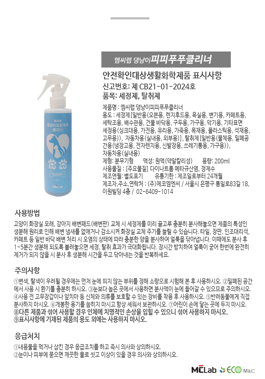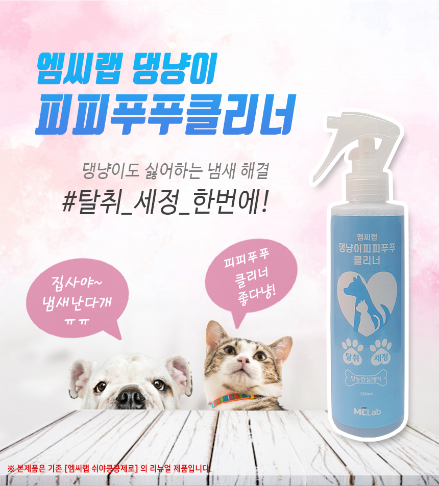 강아지 고양이 펫 반려동물 소변 배변 화장실 얼룩 냄새 제거 엠씨랩 피피푸푸클리너 탈취제