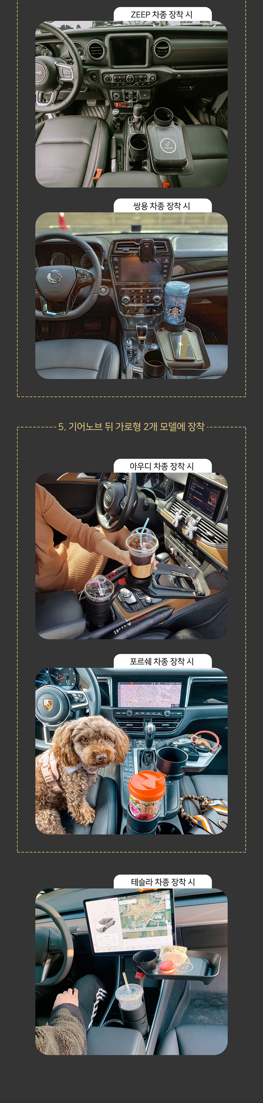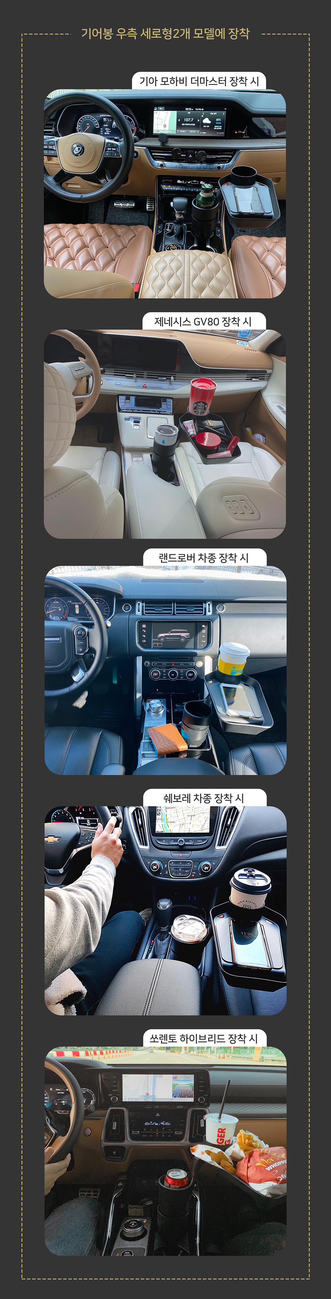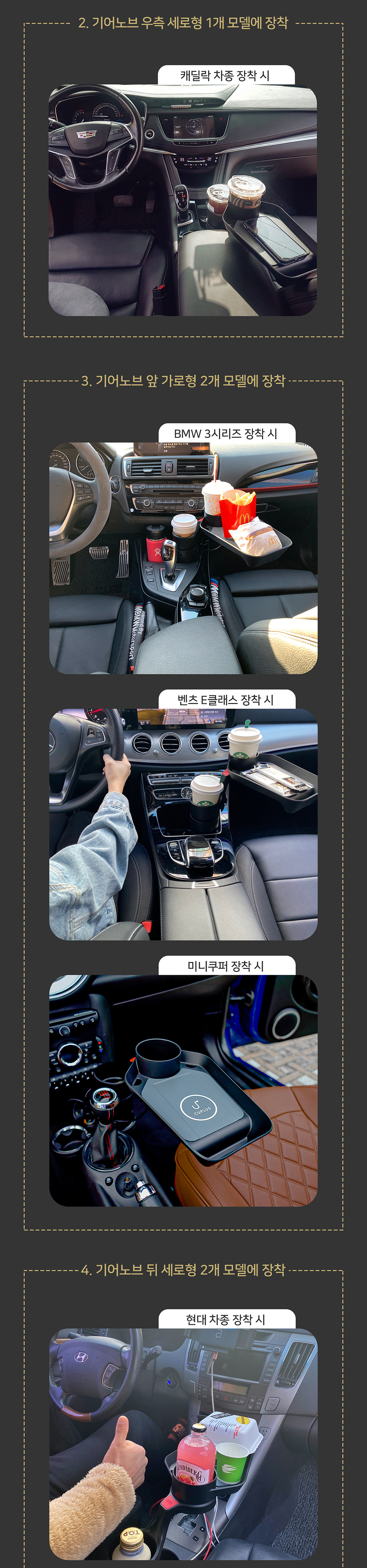 차내 음료와 소품을 효율적으로 보관할 수 있는 컵홀더. 손쉬운 설치와 튼튼한 구조로 모든 차량에 완벽하게 맞으며, 생수 및 음료 거치대로도 사용할 수 있고 트레이에 무선 충전 기능까지 있어 실용성이 뛰어납니다.