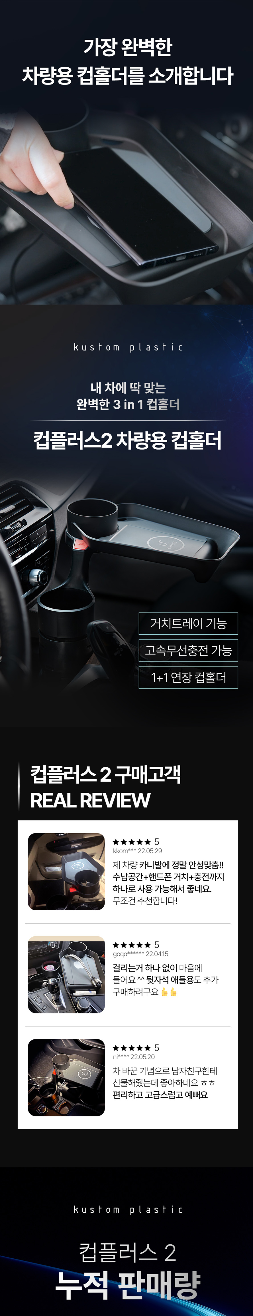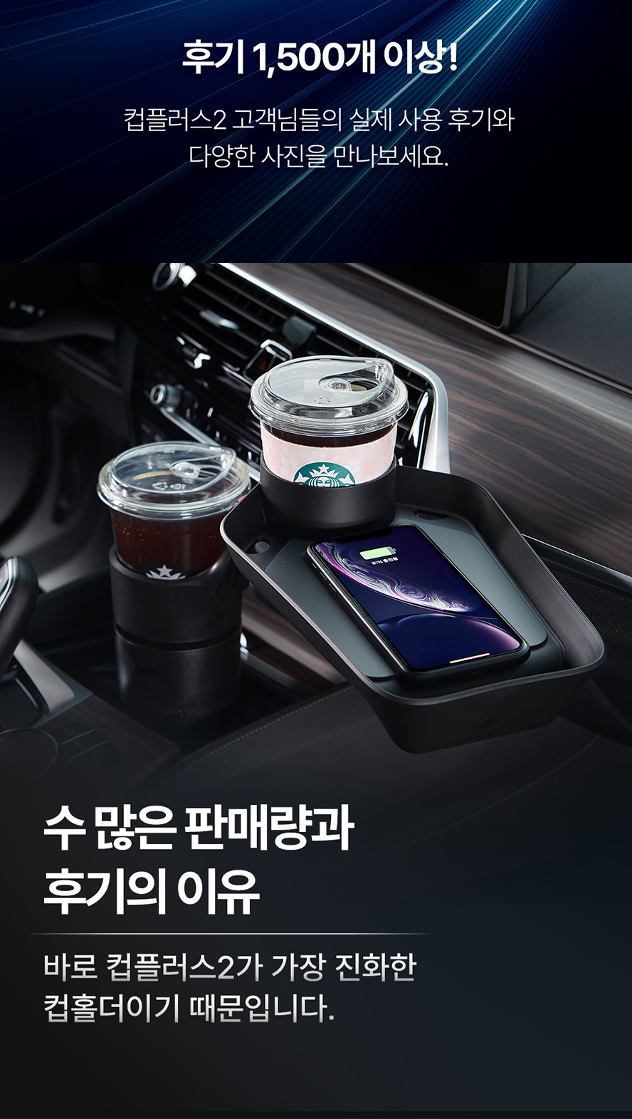 차량용 멀티 컵홀더 스마트폰 무선 충전 트레이 컵플러스2 자동차 액세서리