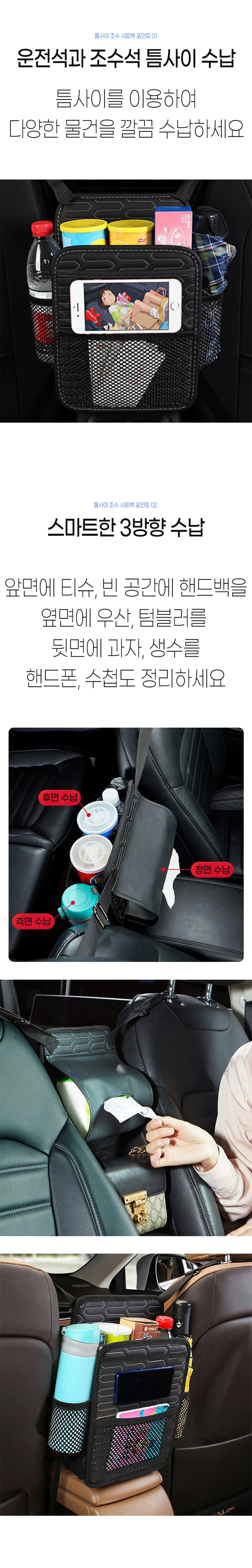 운전석과 조수석 틈사이면 모든 차량모델에 사용가능한 틈사이 조수 시트백.