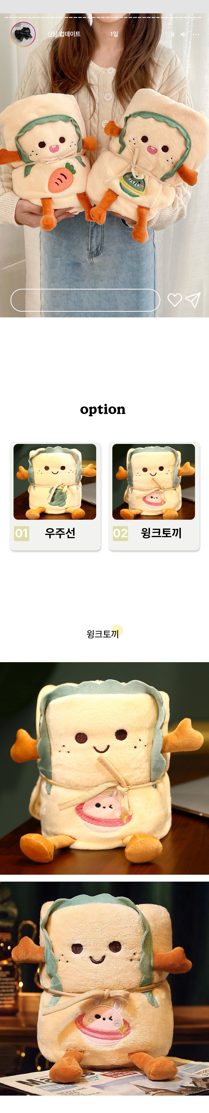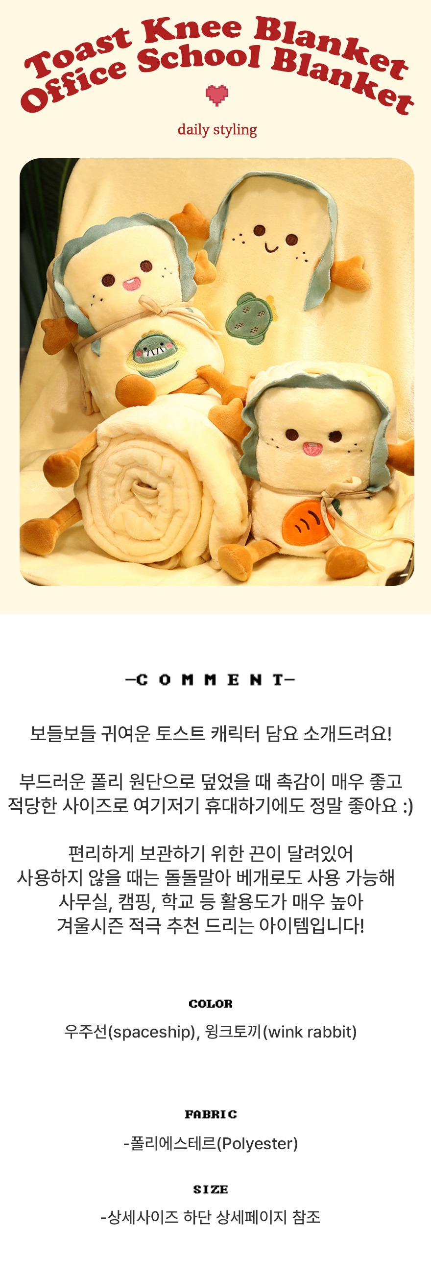 토스트 무릎담요 극세사 차량 학교 학생 사무실 블랭킷 미니 쿠션 휴대용베개