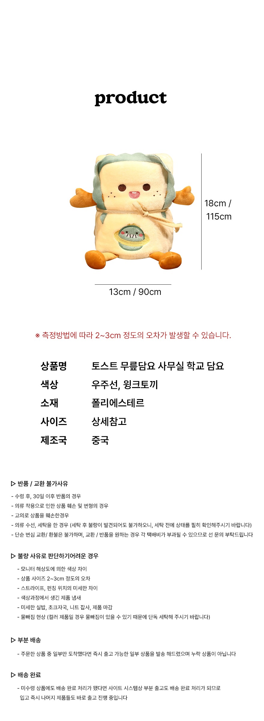 부드러운 폴리 원단으로 덮었을 때 촉감이 매우 좋고 적당한 사이즈로 휴대하기 좋은 토스트담요