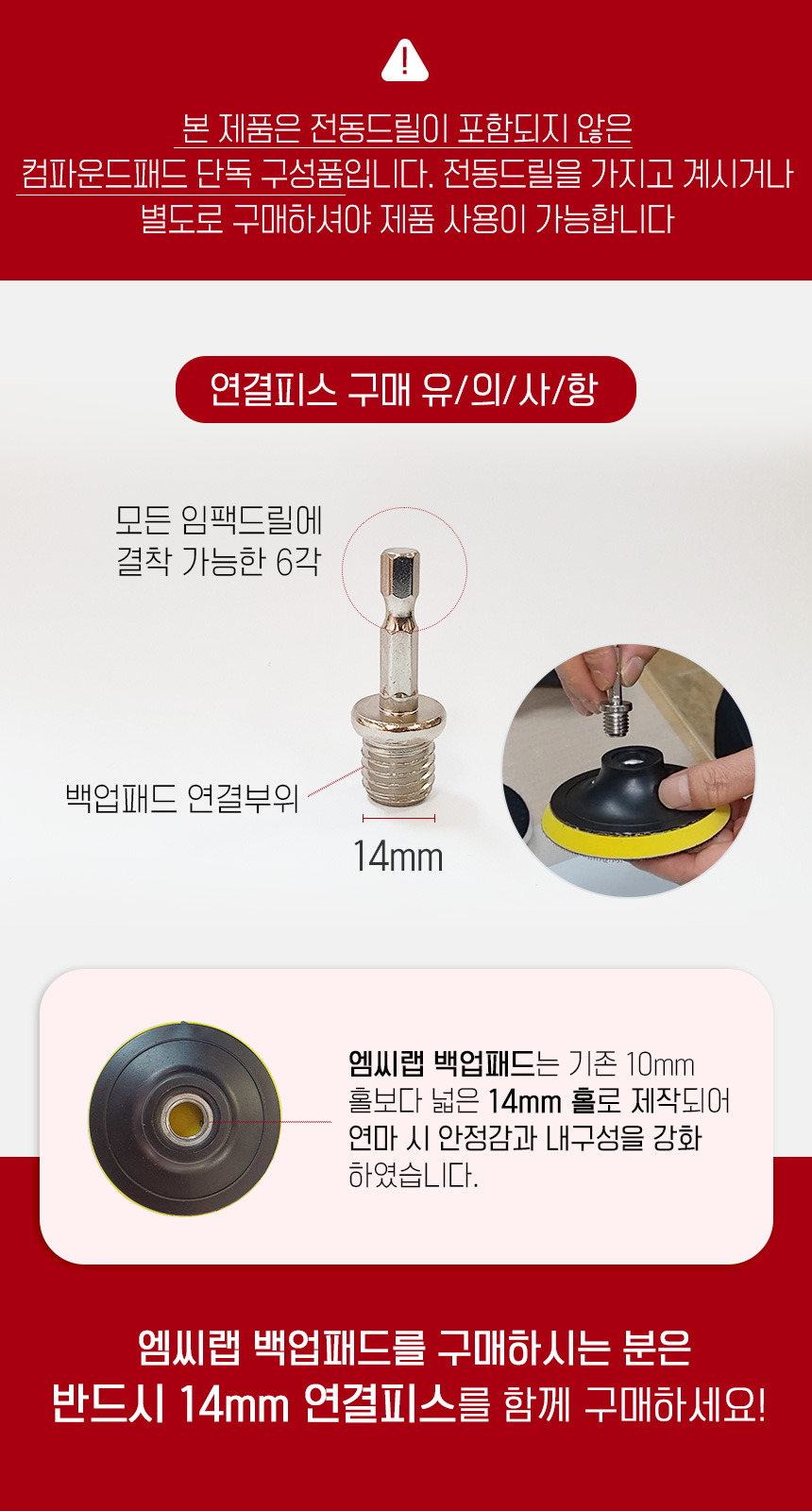 엠씨랩 광택기 광택패드 왁스 포광패드 임팩 전동드릴용 샌딩기용