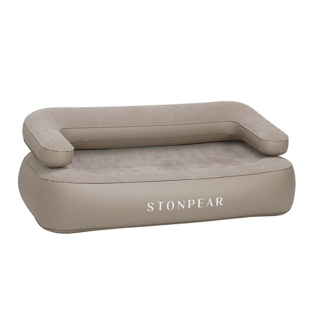 다양한 활용이 가능한 배터리 내장형 에어 펌프가 포함 되어있어 간편하고 스웨이드 원단으로 제작된 간편한 캠핑, 차박용 에어 소파 및 침대.