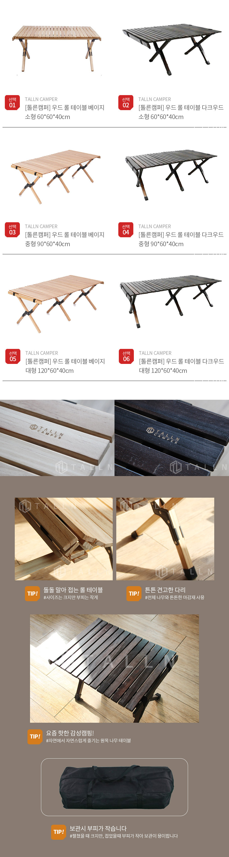 톨른캠퍼 소나무 원목 롤 테이블 접이식 캠핑 V2 휴대용 소풍 나들이 다용도 탁자