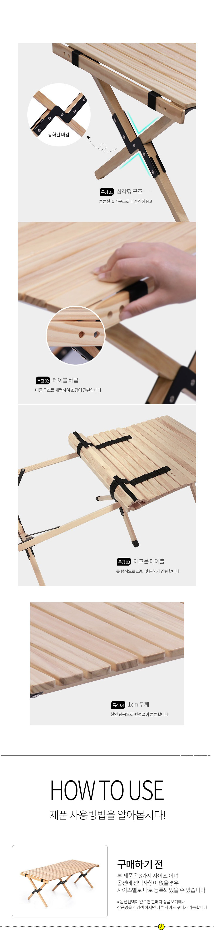 사이즈는 크지만 부피는 작게! 돌돌 말아 접는 롤 테이블로 보관이 용이한 소나무 원목 롤 테이블 입니다.