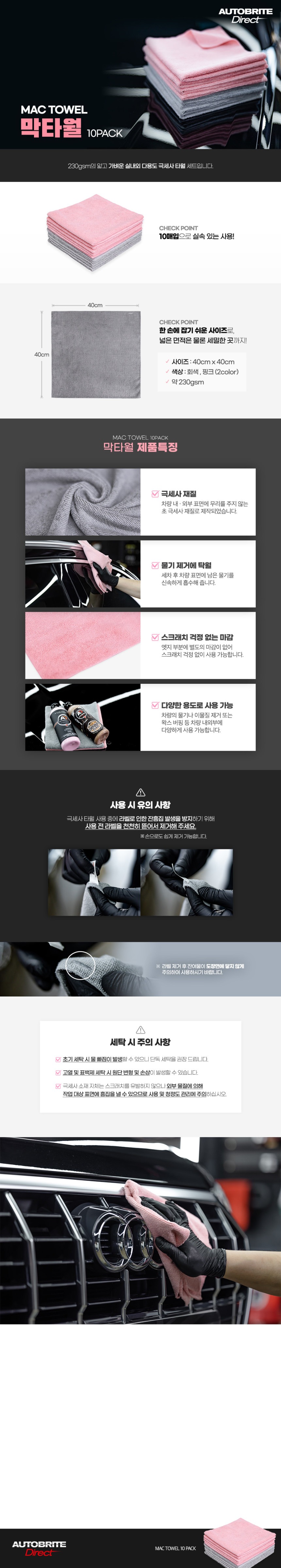 AD오토브라이트 MAC 빠른 흡수 차량용 극세사 타월(10매입)