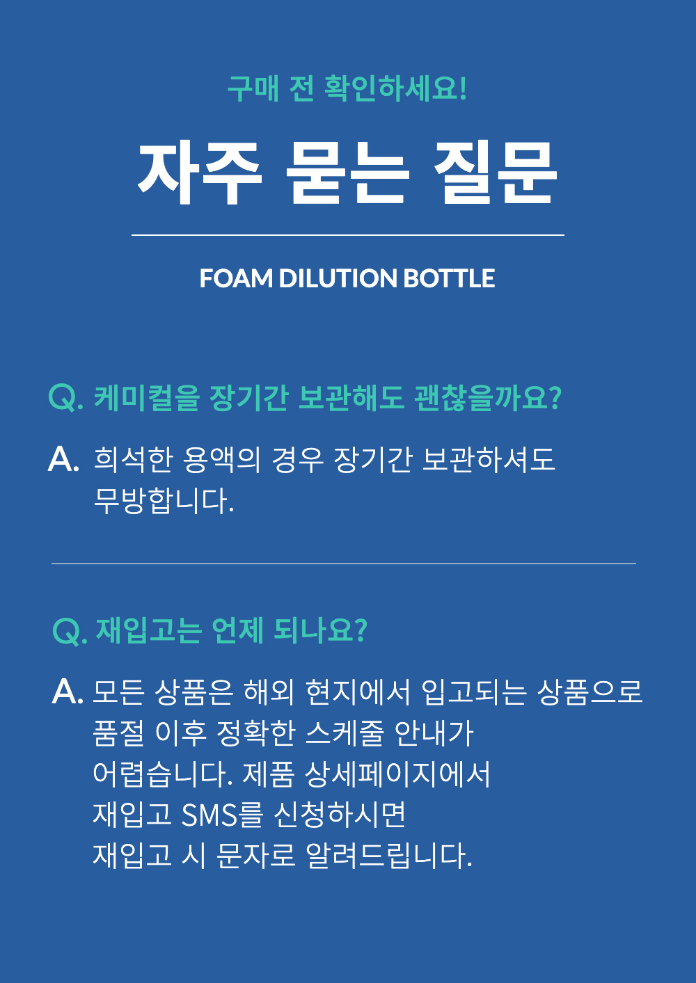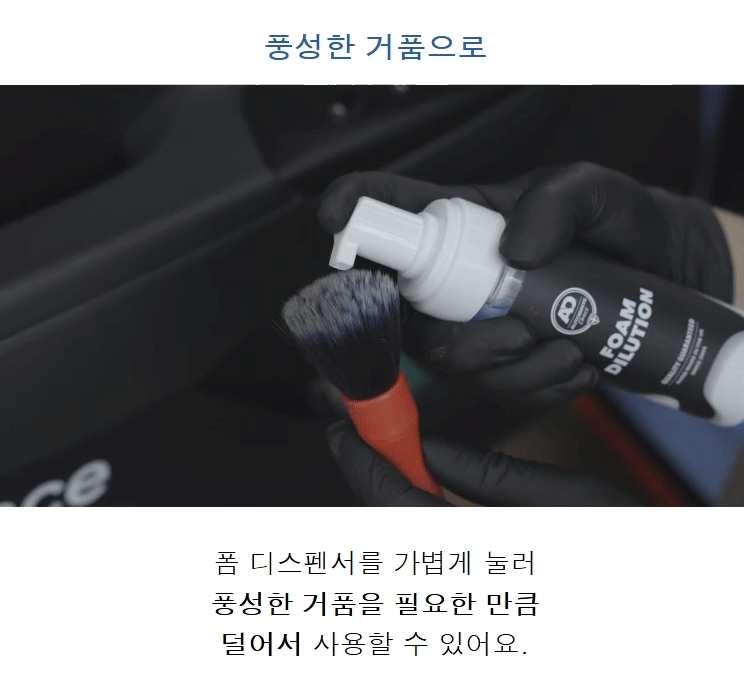 폼 딜루션 보틀은 실내세정제를 거품 형태로 만들어 주변에 튈 걱정 없이 사용할 수 있습니다.