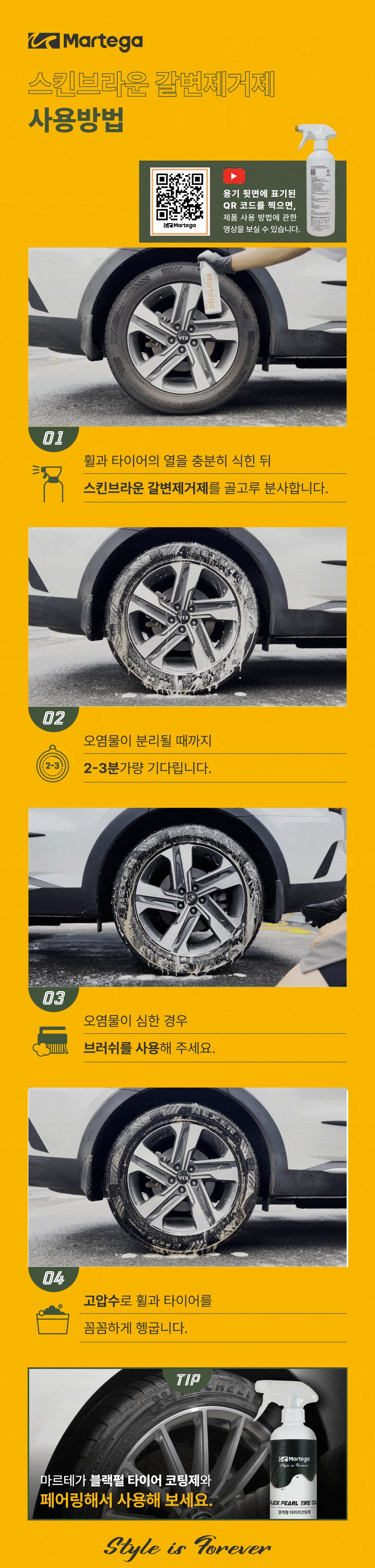 차량용 셀프세차 휠클리너 세정 마르테가 스킨브라운 갈변 제거제 500ml