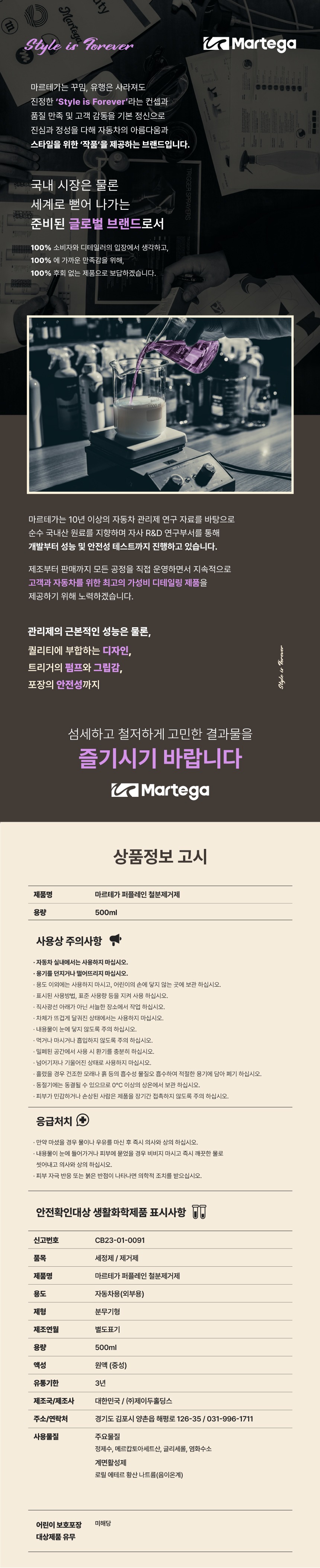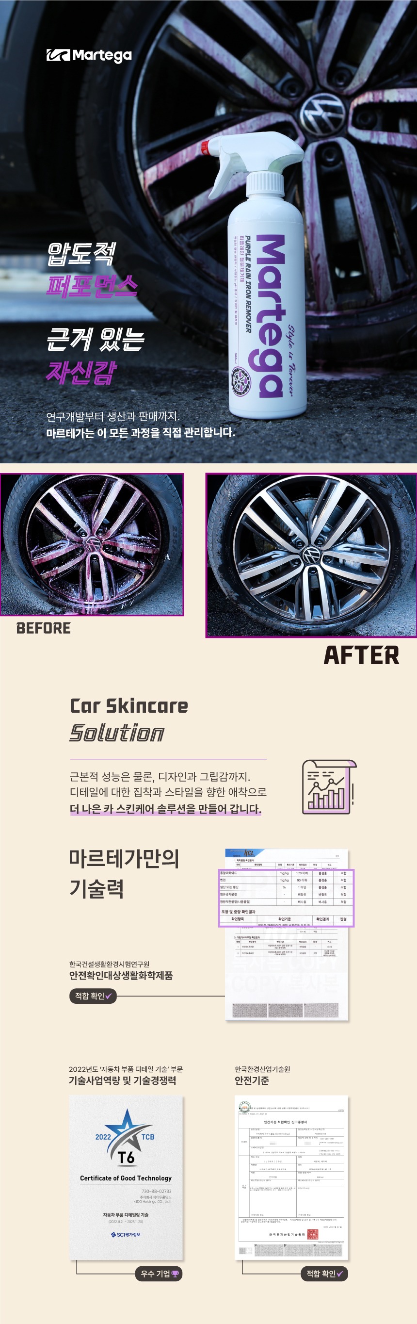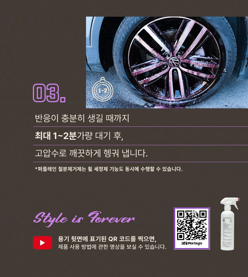 세차용품 셀프세차 타이어 휠 마르테가 퍼플레인 철분제거제 500ml