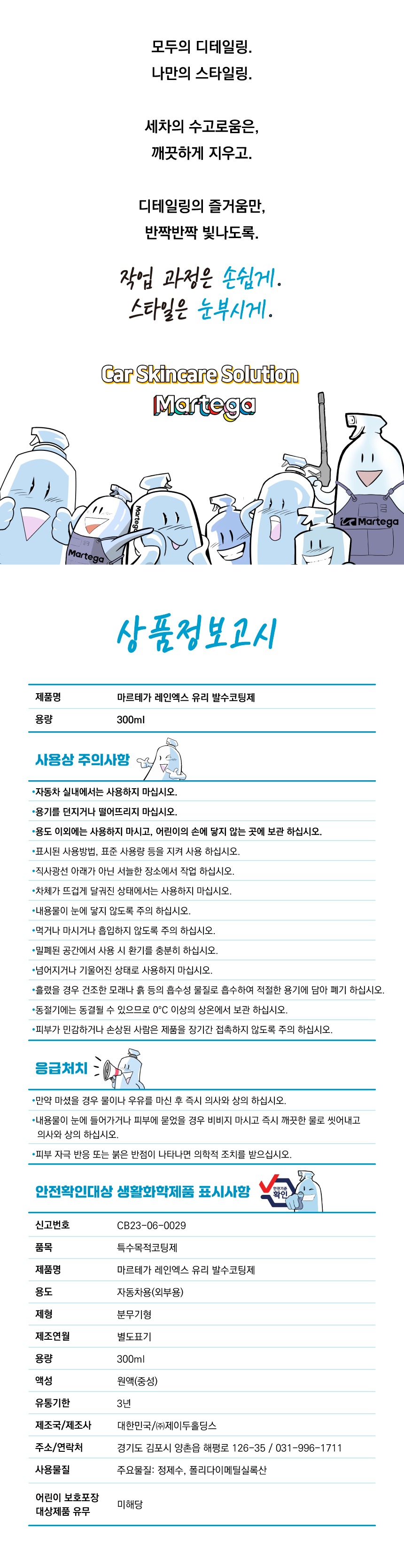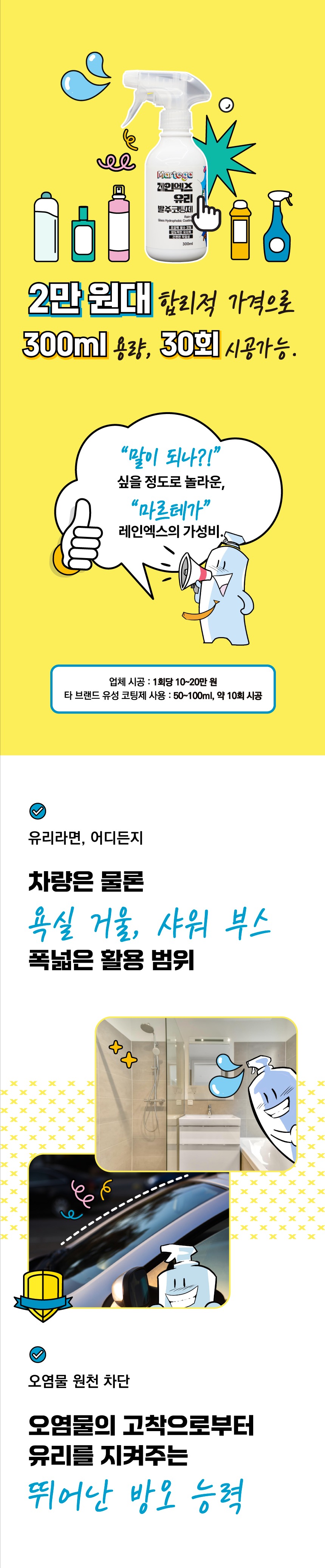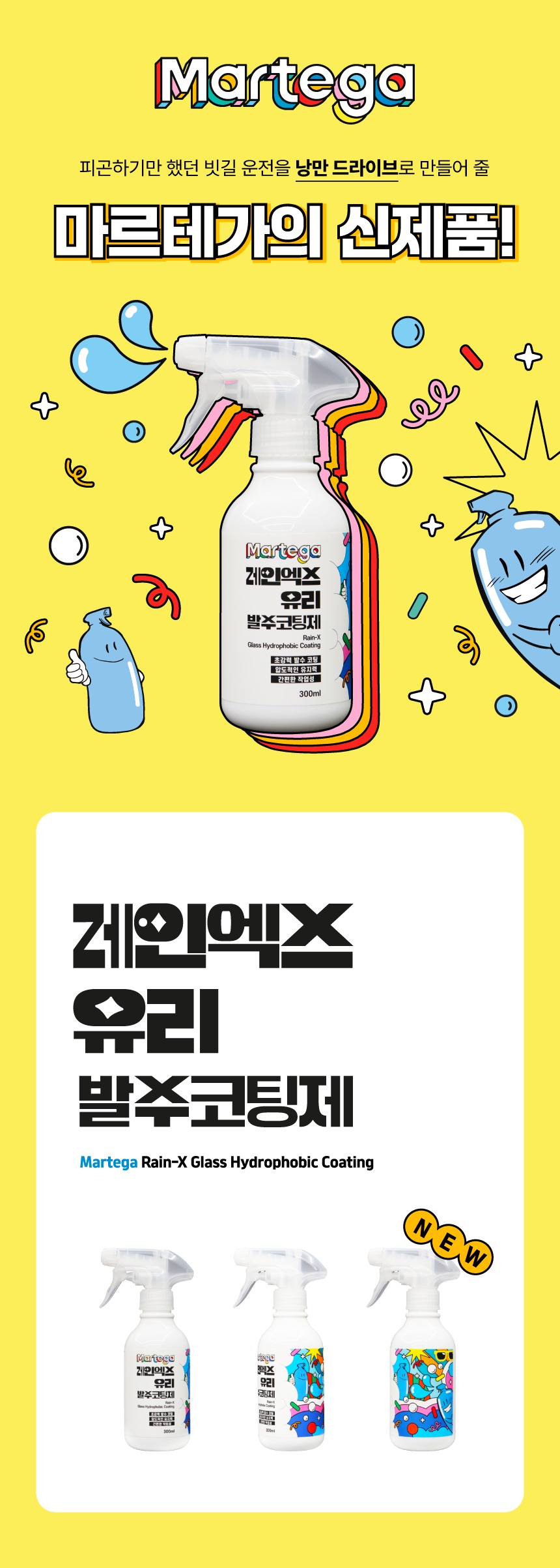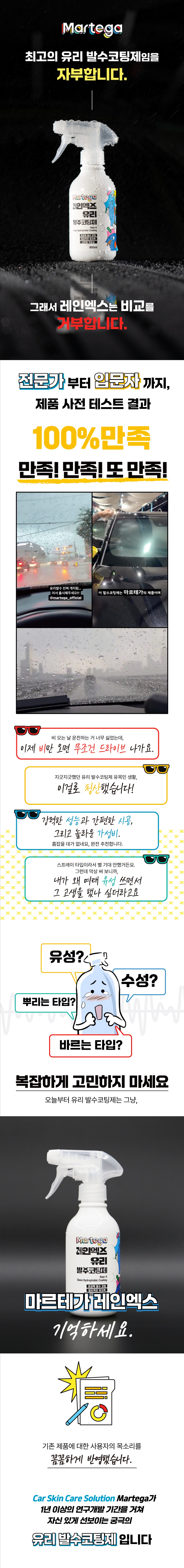 세차용품 셀프세차 마르테가 레인엑스 유리 발수코팅제 300ml