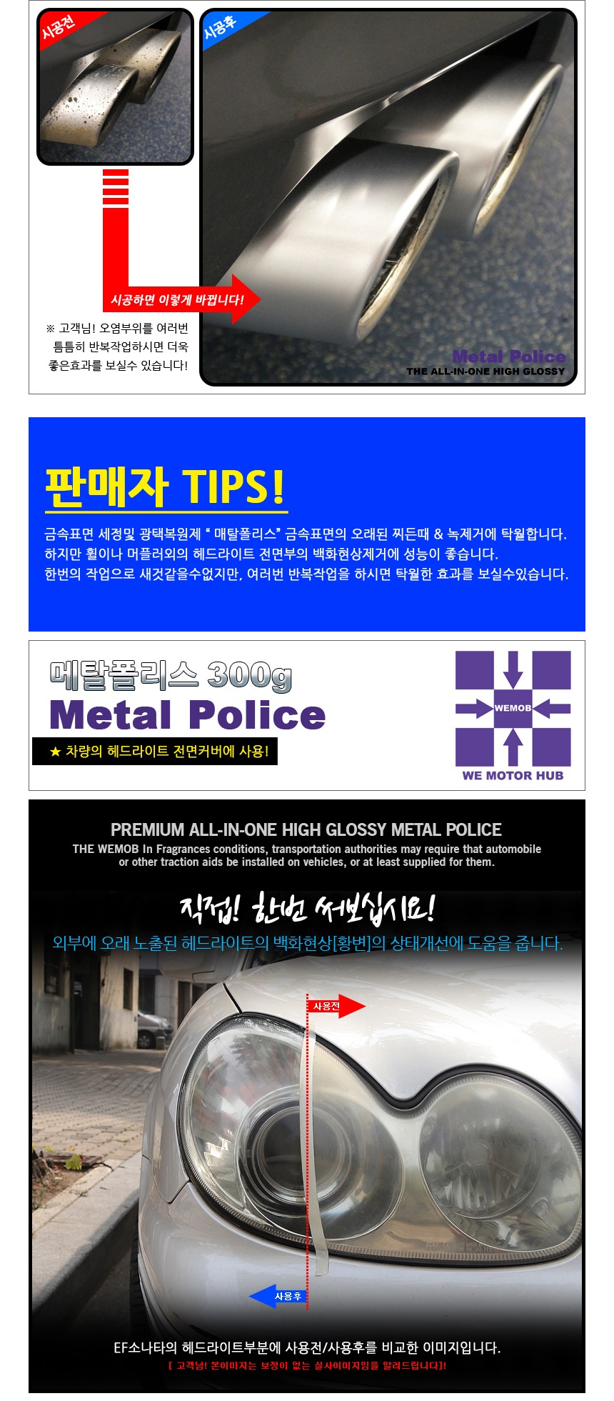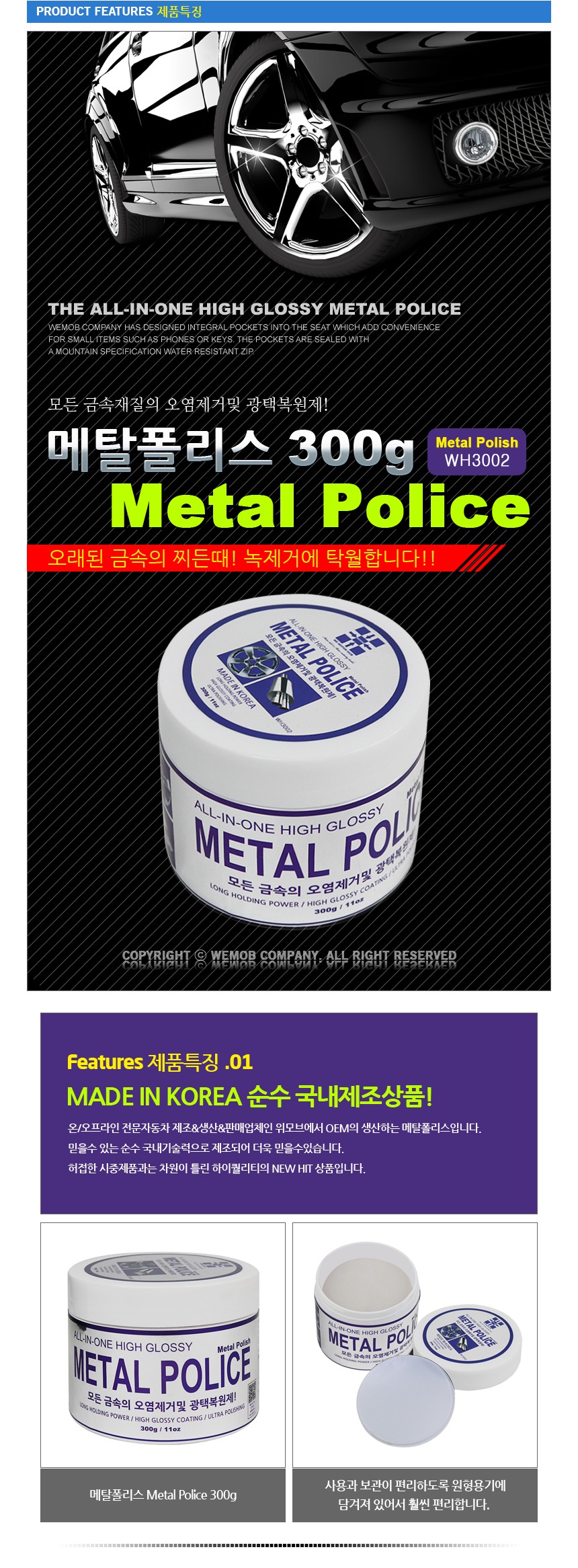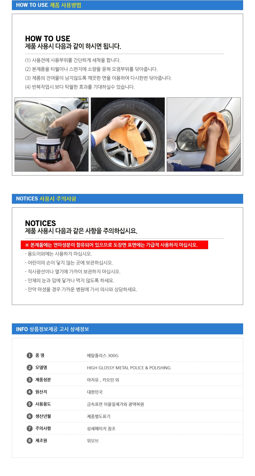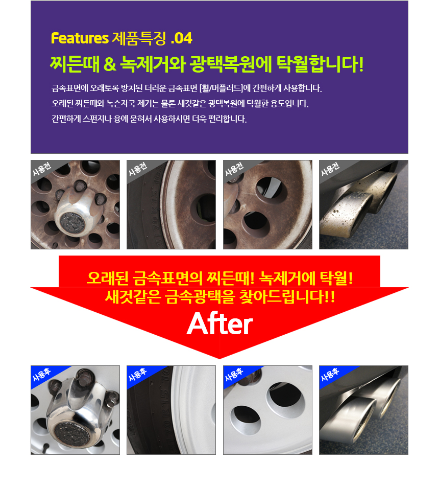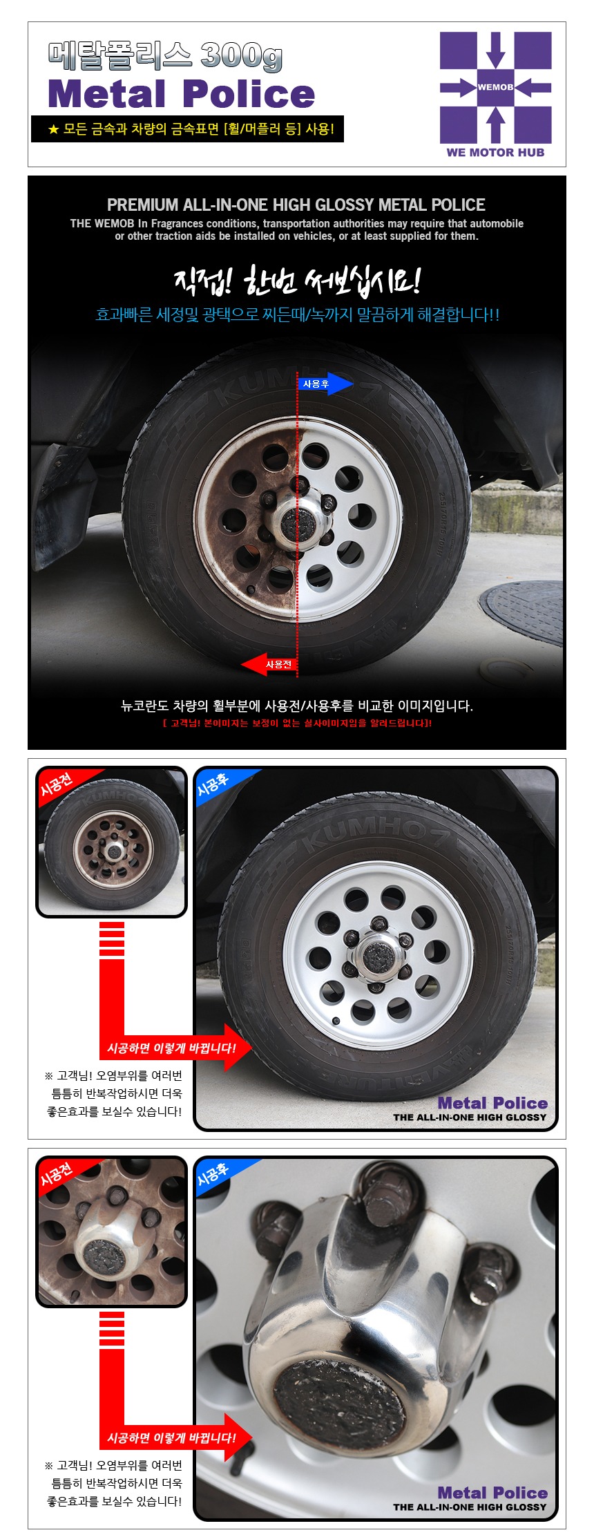 셀프세차 세차용품 찌든때 세정 고광택 휠세정제 메탈폴리스 300g