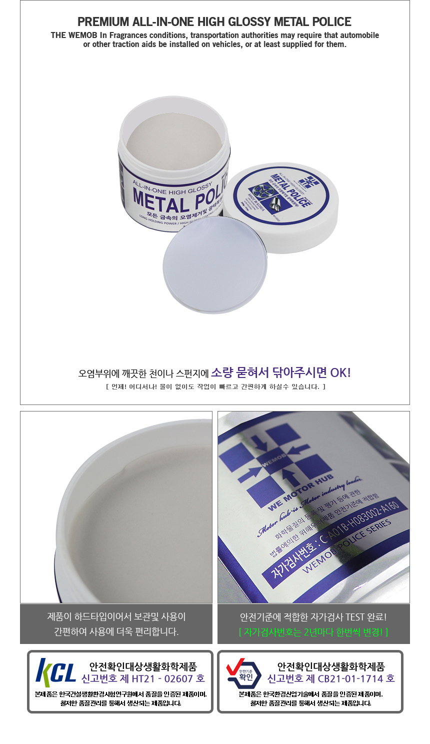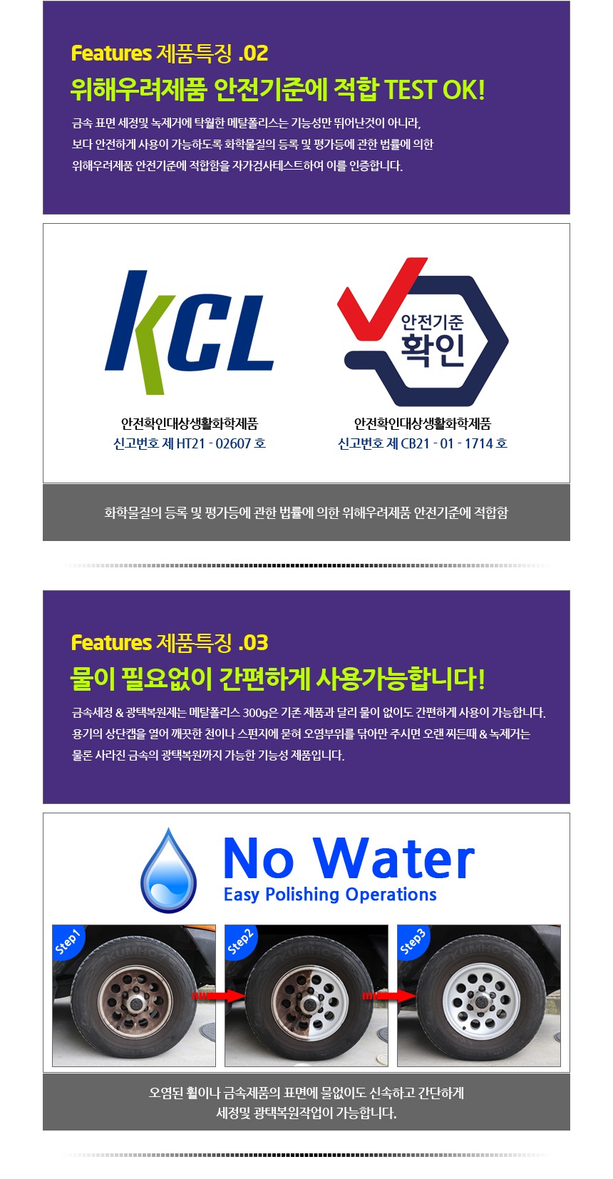 물 없이도 간편하고 빠르게 세정 및 광택 복원이 가능해요