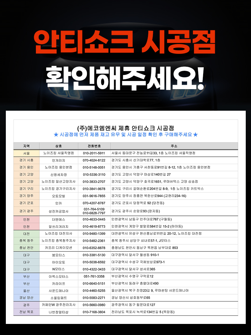 자동차 승차감 개선 방음 방진 시스템 엠씨랩 안티쇼크 30패치