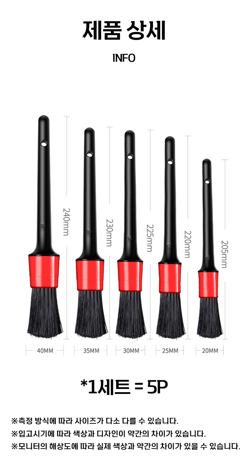 세차용품 자동차 세차 솔 틈새 청소 디테일링 브러쉬 5종세트