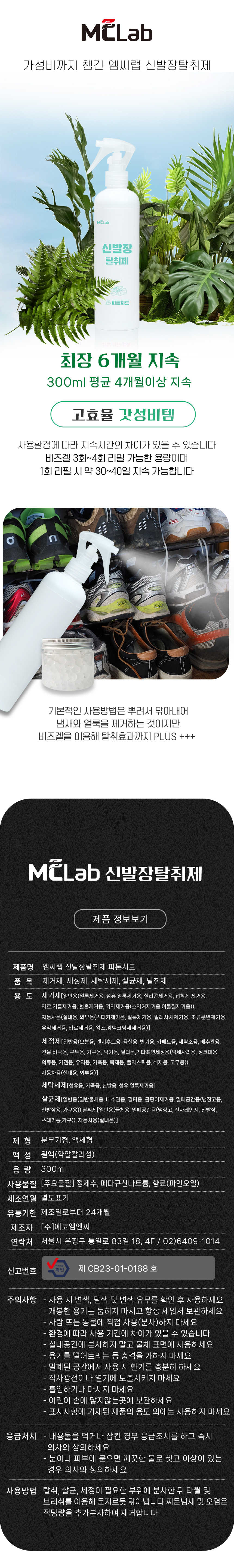 엠씨랩 운동화 구두 발냄새 제거 신발장 탈취제 피톤치드 300ml