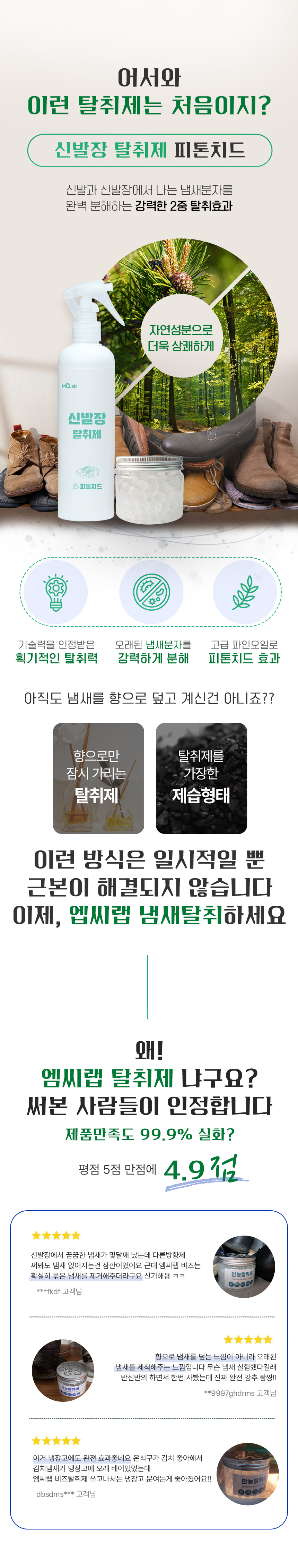 신발과 신발장에서 나는 냄새분자를 완벽 분해하는 강력한 2중 탈취효과