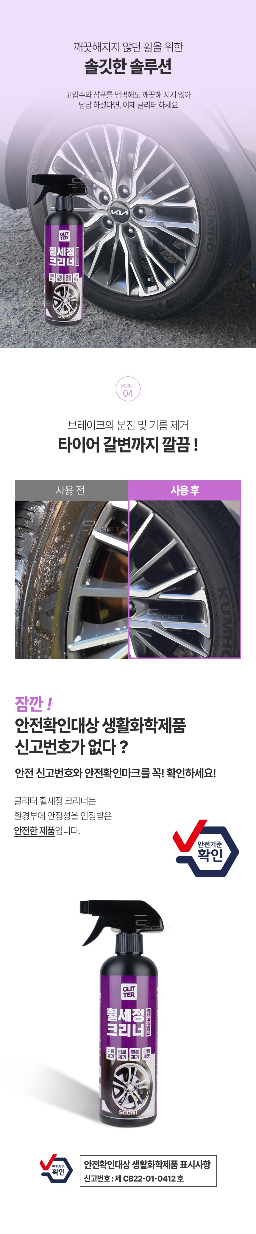 브레이크 분진,철분을 글리터 휠세정 크리너 하나로 종결!