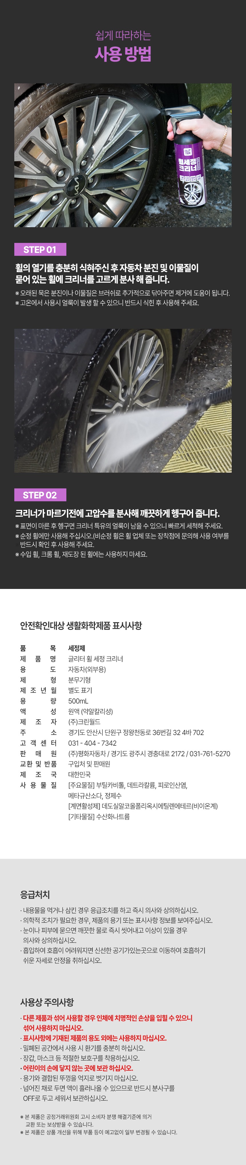 세차용품 셀프세차 철분 제거제 글리터 자동차 휠 세정 클리너 500ml