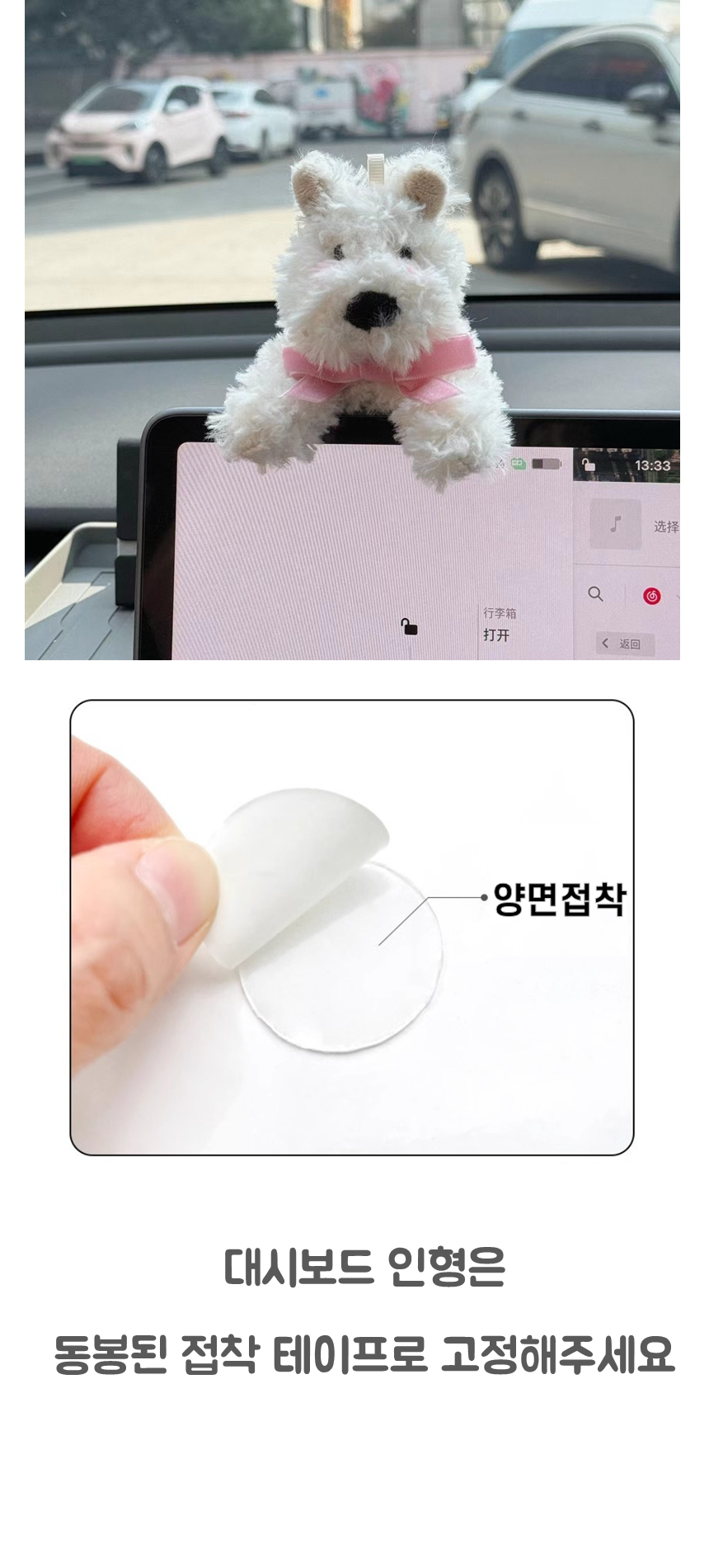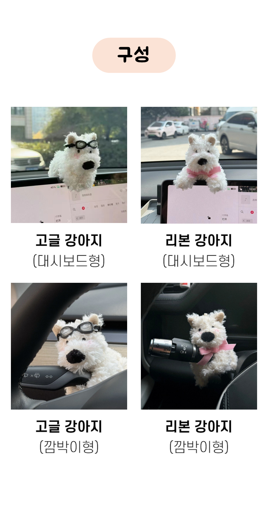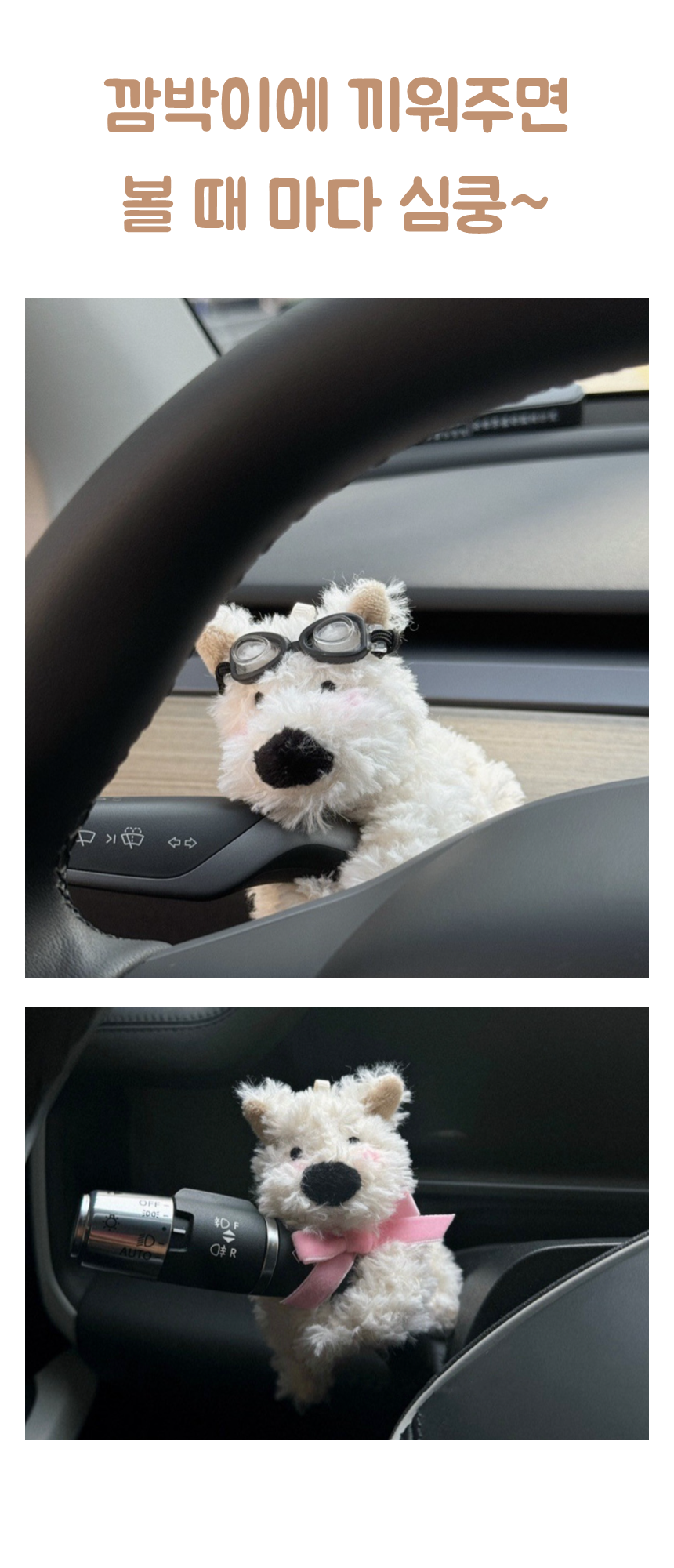 차량용 깜빡이 안전벨트 대시보드 리본 강아지 인형 차꾸미기 차꾸템 자동차 카테리어