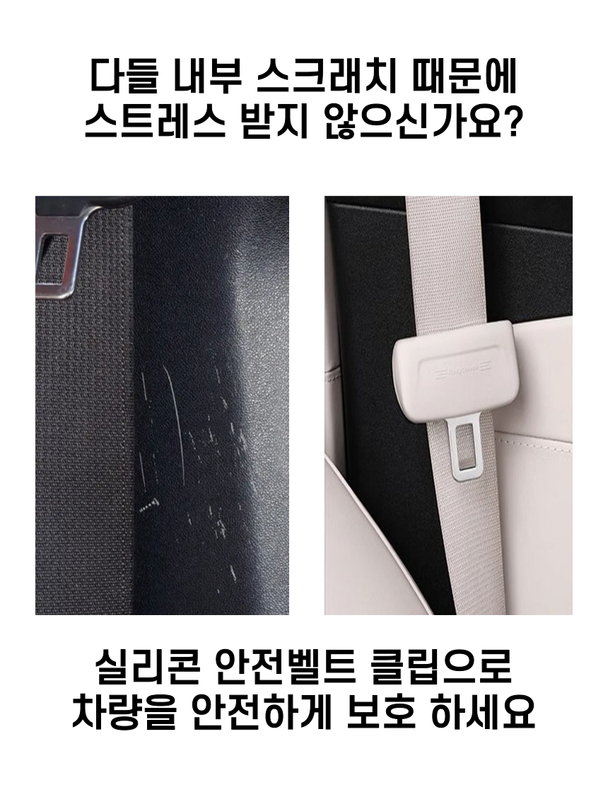 안전벨트 클립으로 인한 차량 내부 스크래치와 소음을 방지해주는 클립 실리콘 커버!
