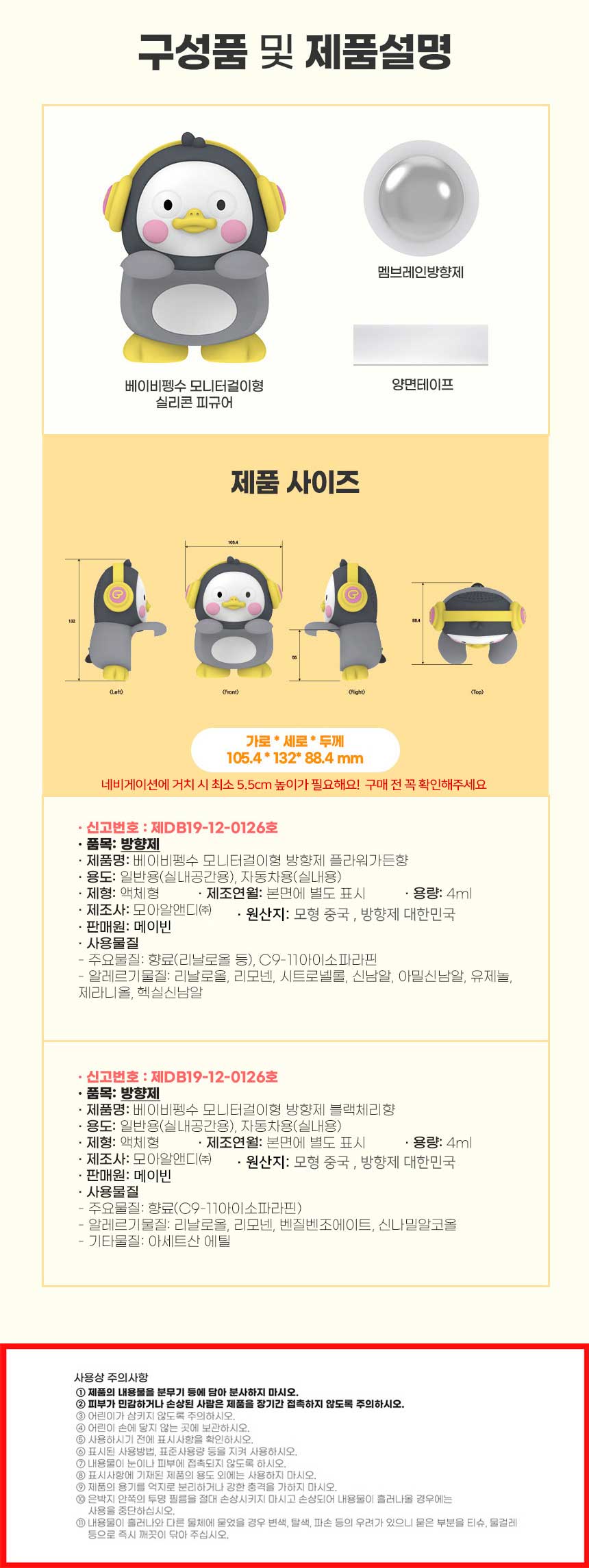 펭수 방향제 가정용 차량용 디퓨저 귀여운 캐릭터 차꾸미기