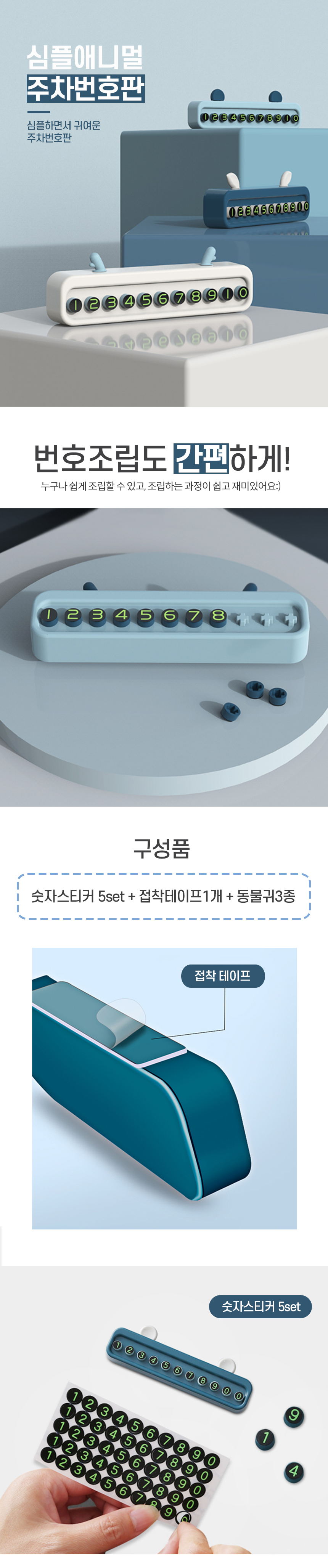 차량용 주차번호판 차량용 조립 심플 애니멀 번호 귀여운 차꾸미기 차꾸템