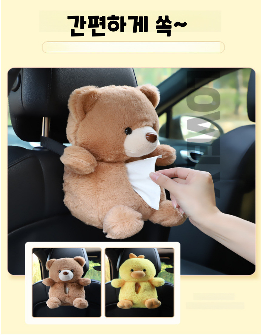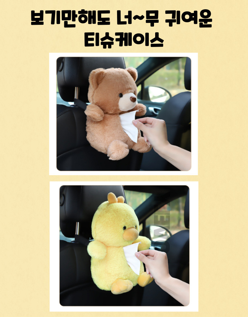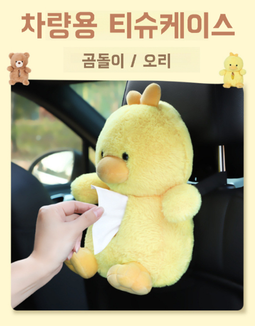 차량용 휴지걸이 곰돌이 오리 인형 귀여운 티슈 물티슈 휴지 케이스