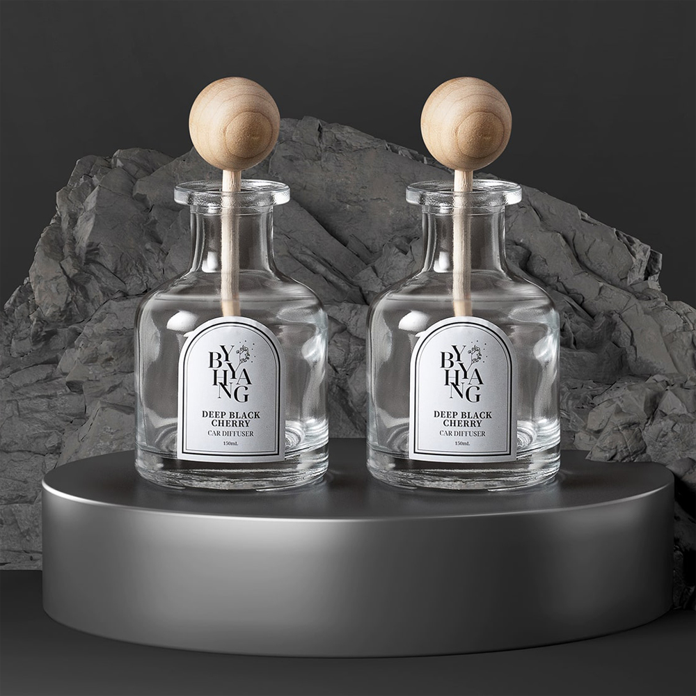 고급스러운 유리병에 담긴 차량용 우드볼 디퓨저로 차 내부를 상쾌하고 향기롭게!