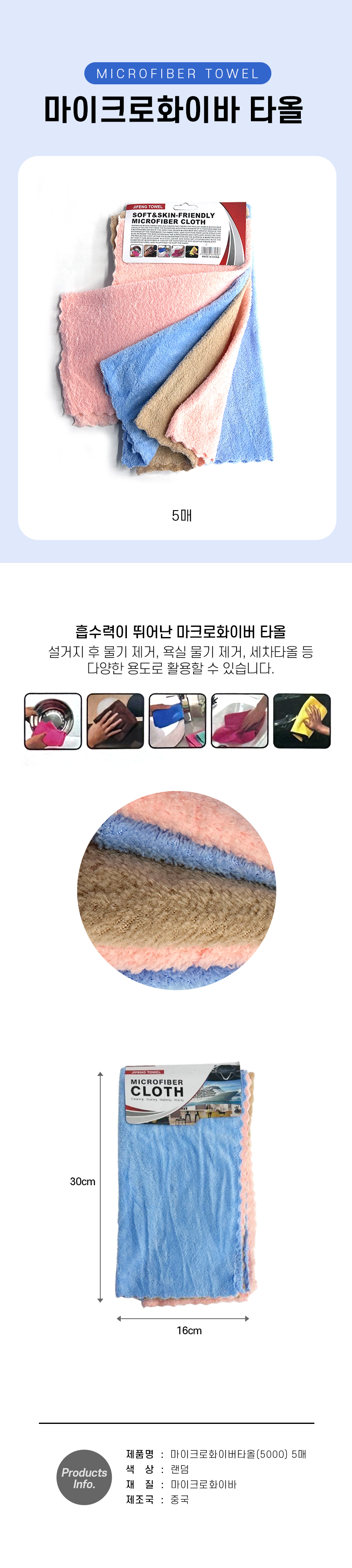 미니 컬러 마이크로화이바 세차 다용도 타올 5p 세트