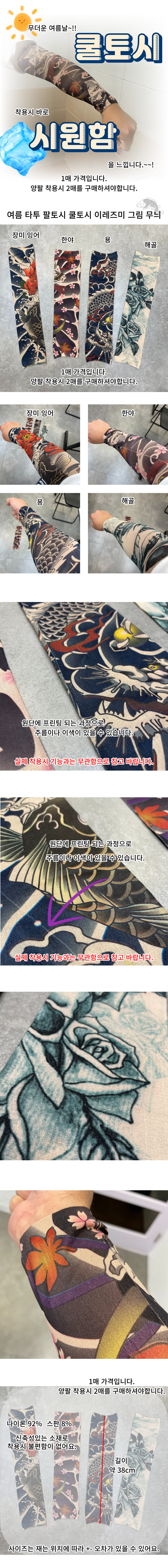 자동차 운전 시원한 냉감 여름 팔토시 이레즈미 타투 쿨토시 안전운전
