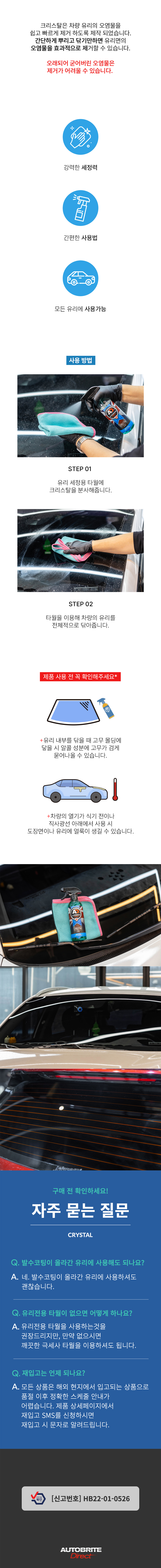 AD 오토브라이트 유리세정제 크리스탈 500ml 세차 유리막 세정 스프레이
