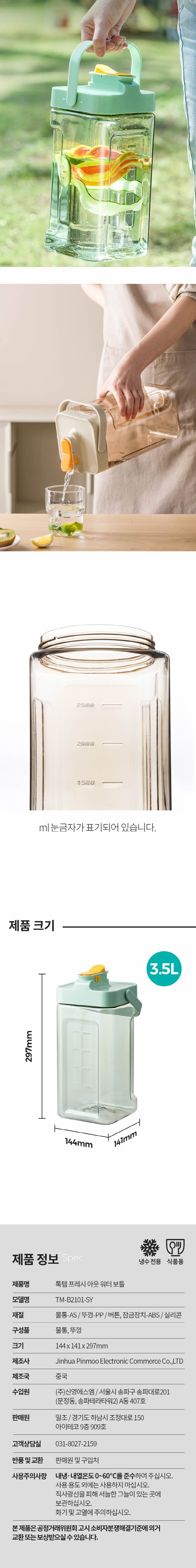 프레시아웃 워터보틀 대용량 물통 피크닉 캠핑 소풍 실내 가정용 수통